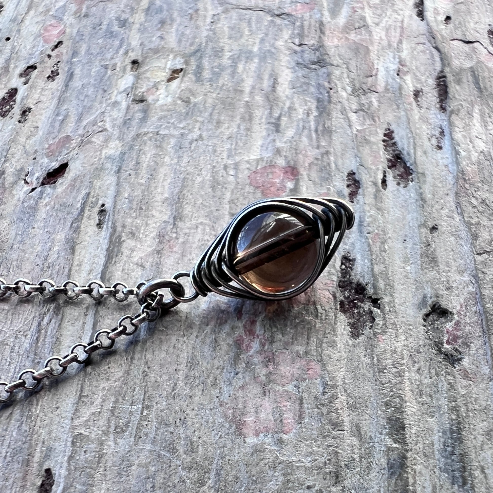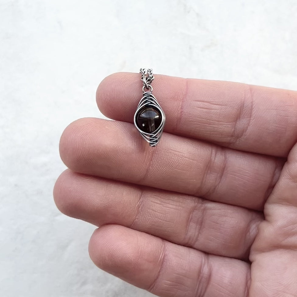 Sterling Silver Smoky Quartz Necklace | Natural Stone Wire-wrapped Pendant
