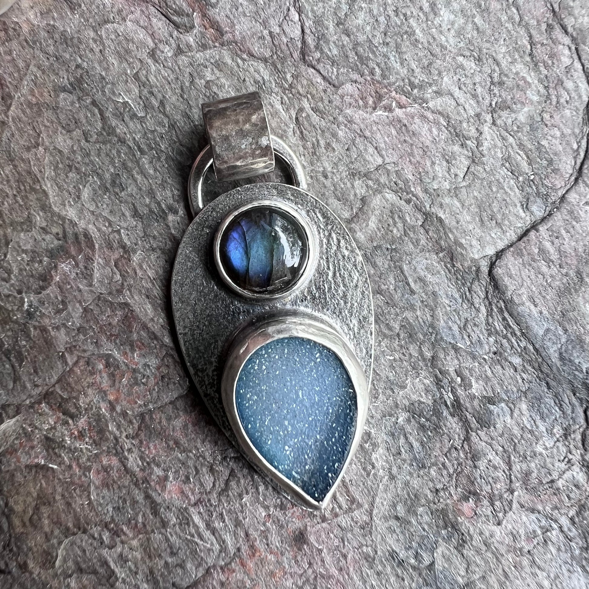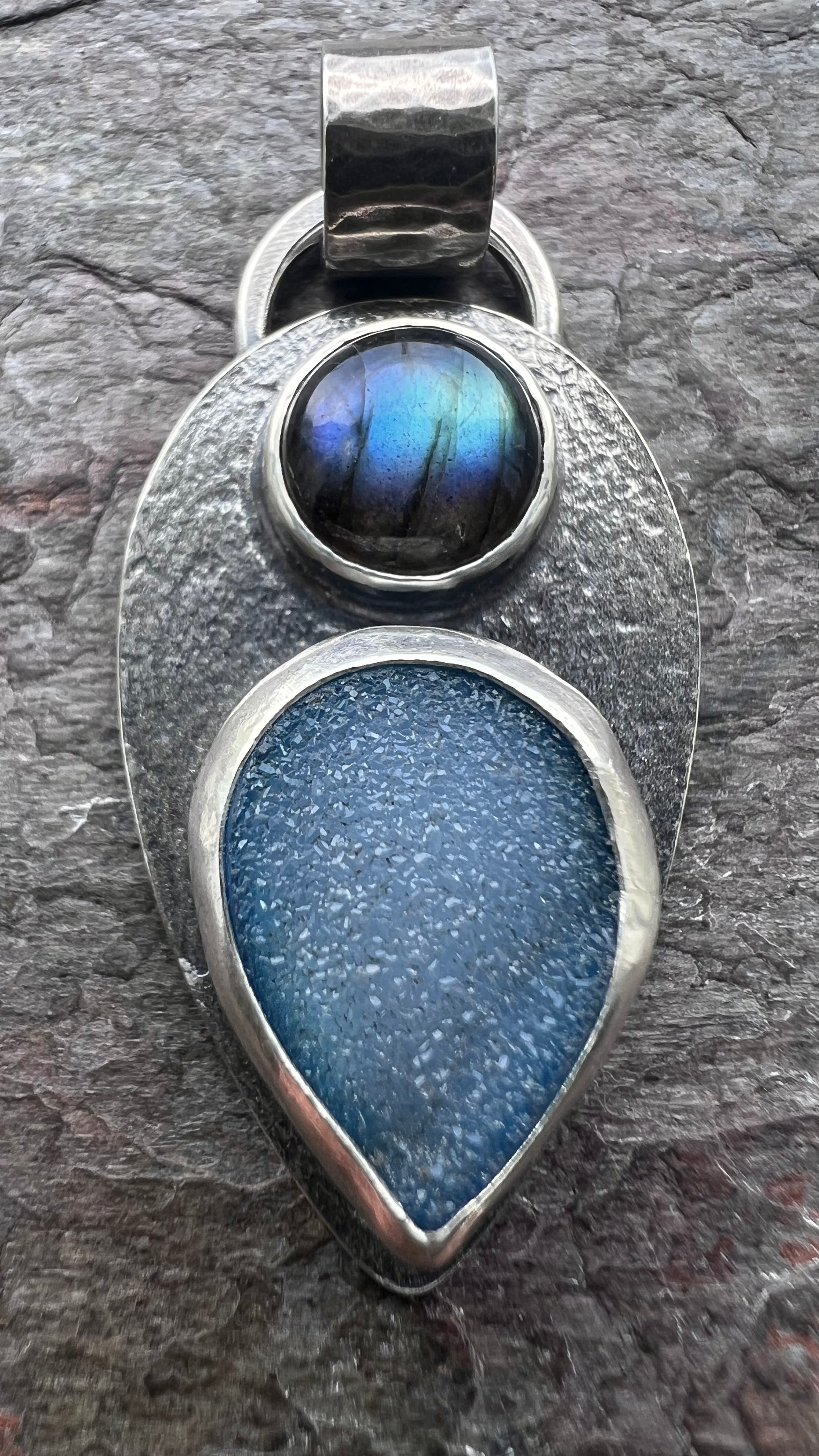 Labradorite and Agate Druzy Sterling Silver Pendant - One-of-a-Kind Handmade Pendant