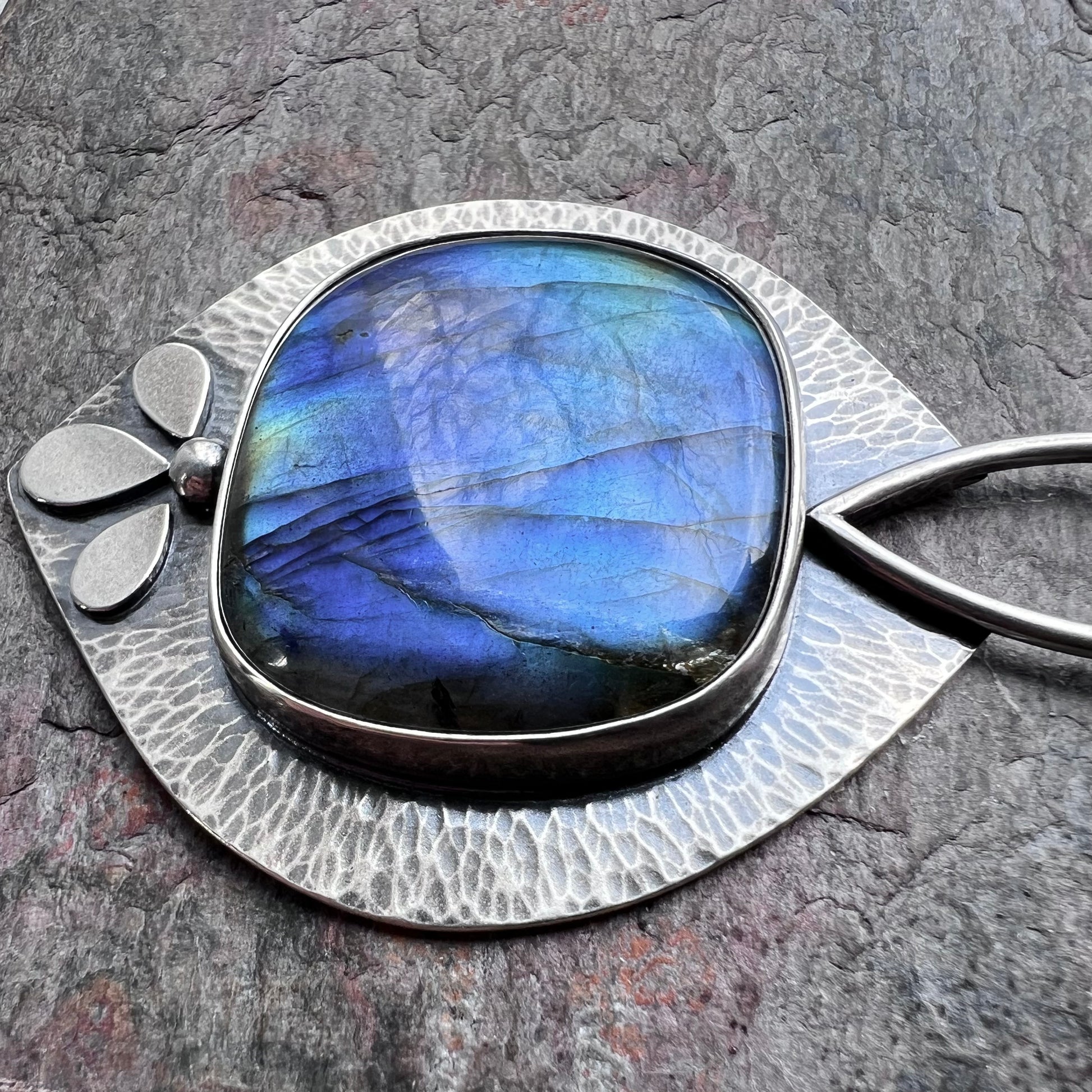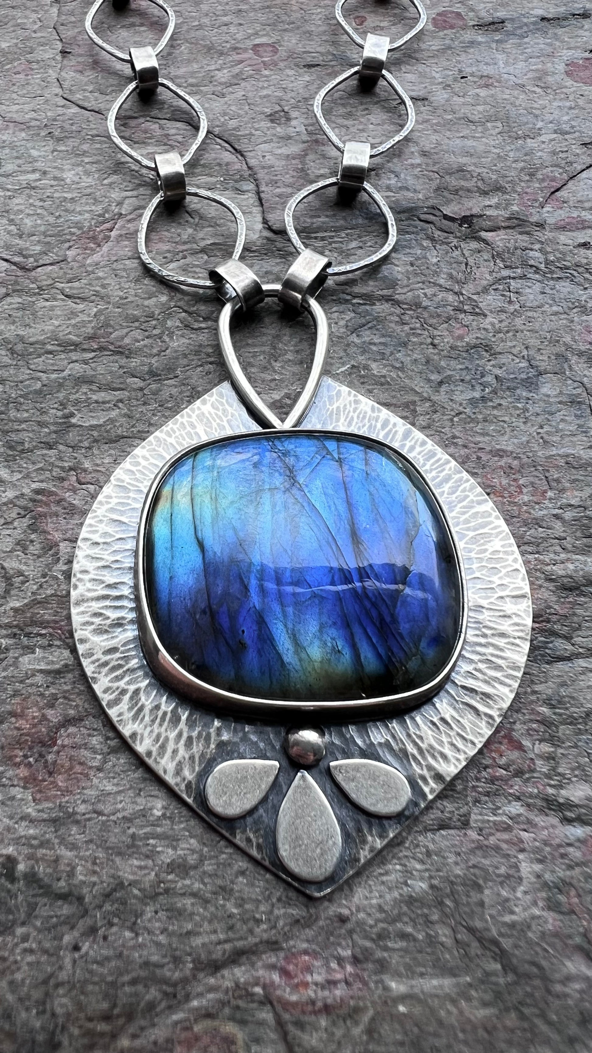 Labradorite Sterling Silver Necklace - Large Handmade One-of-a-kind Pendant on Sterling Silver Chain