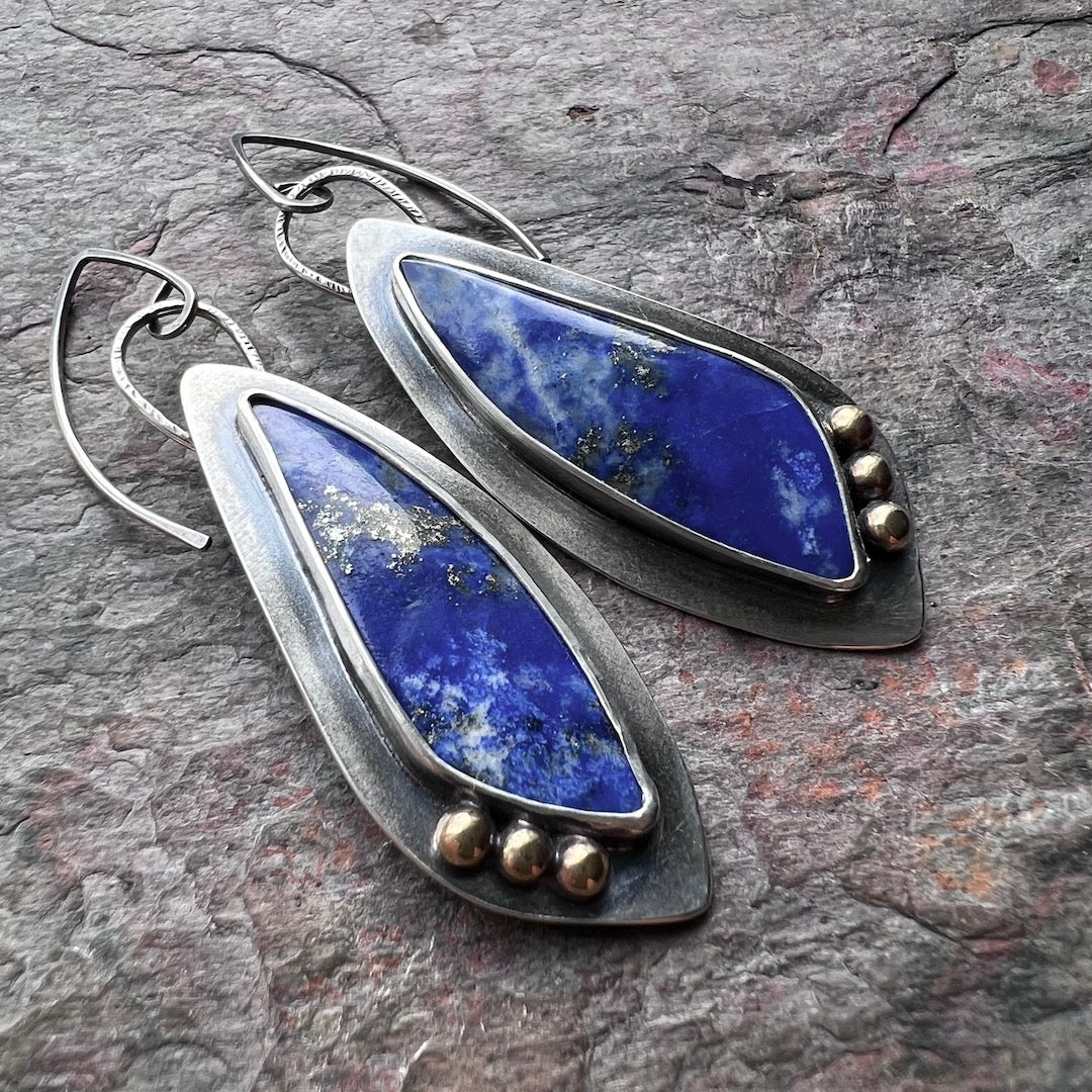 Lapis Lazuli Sterling Silver Earrings - Handmade One-of-a-kind Earrings