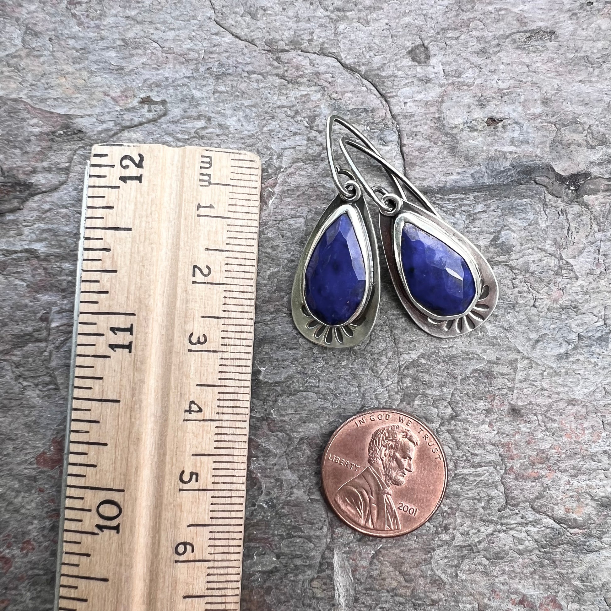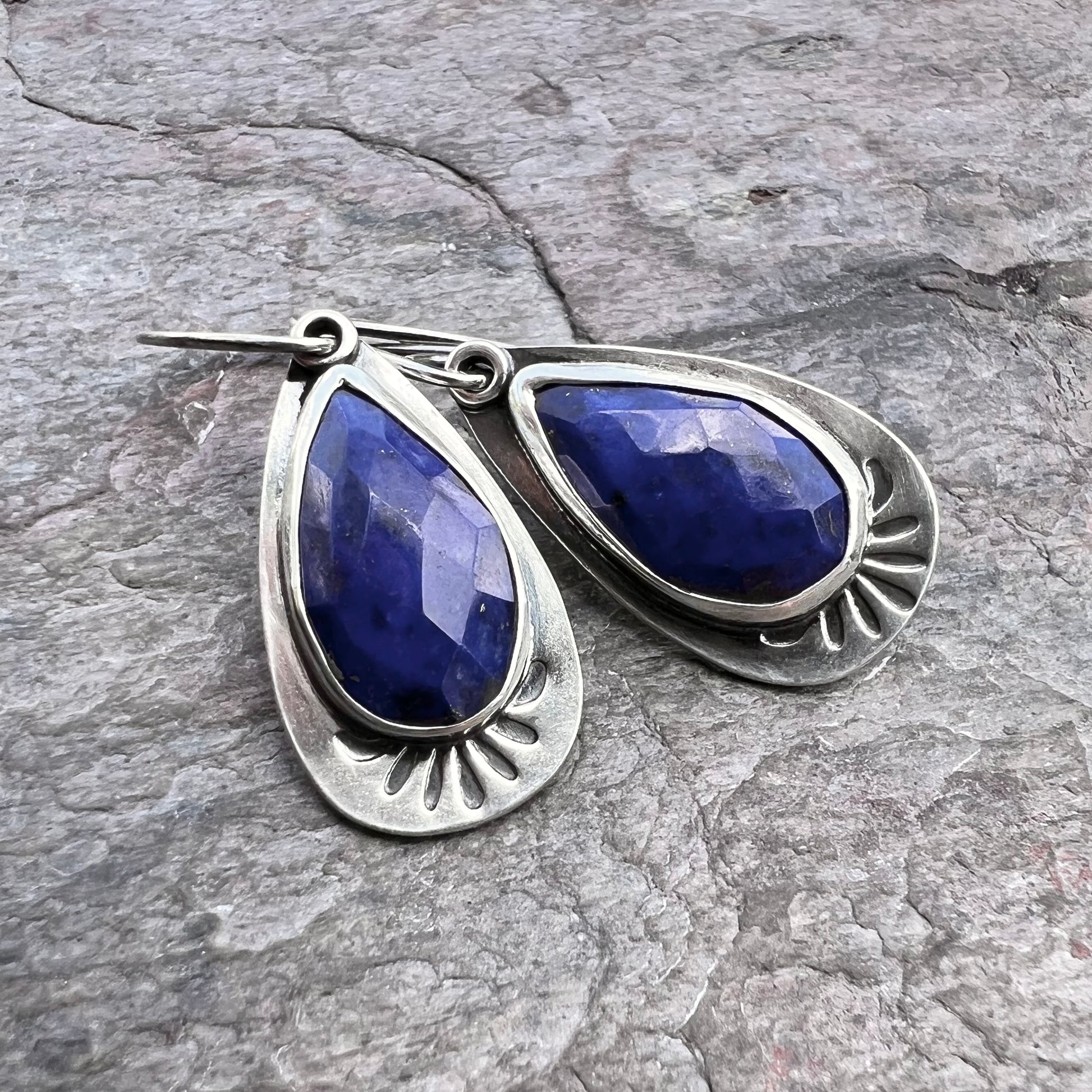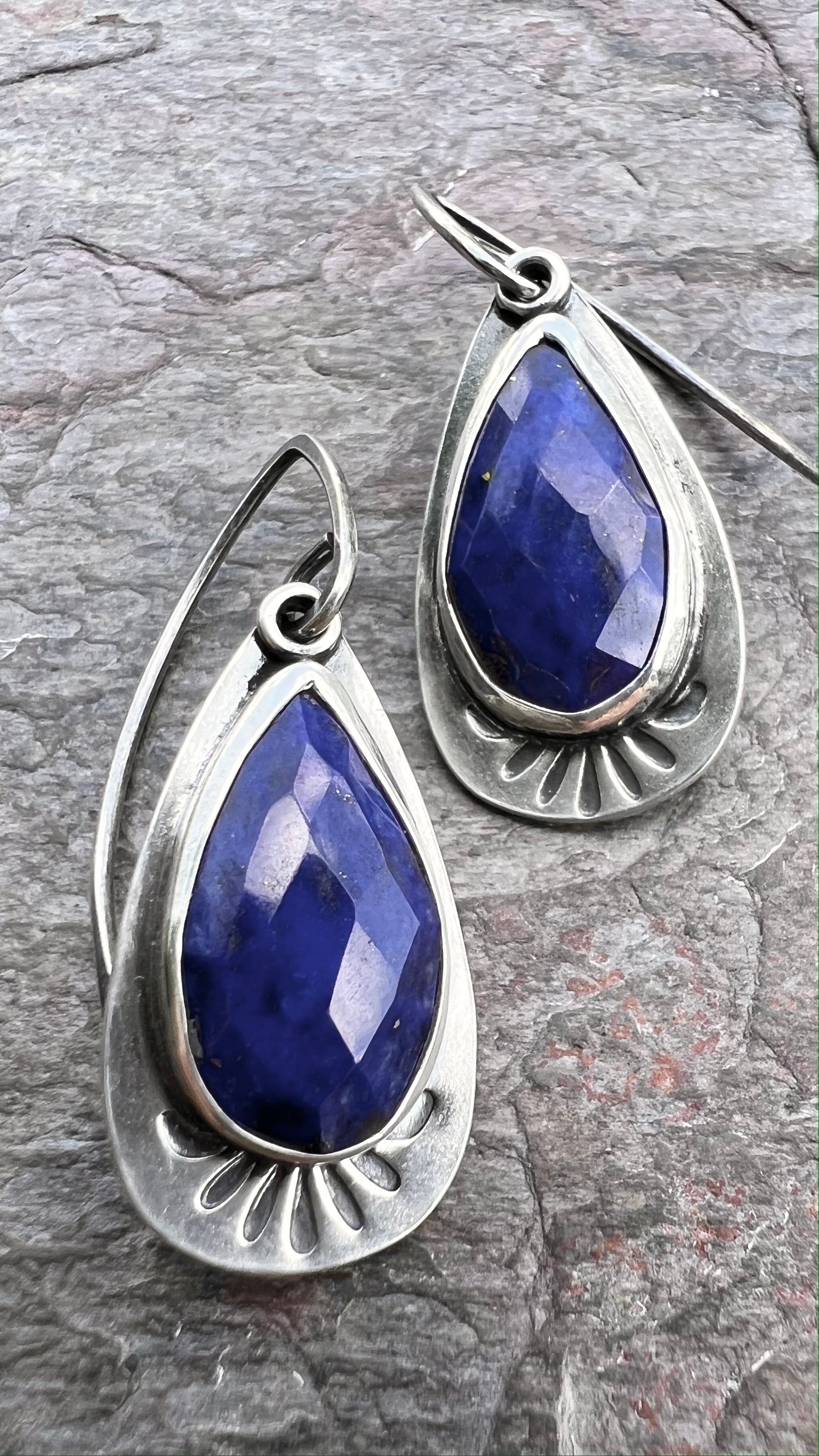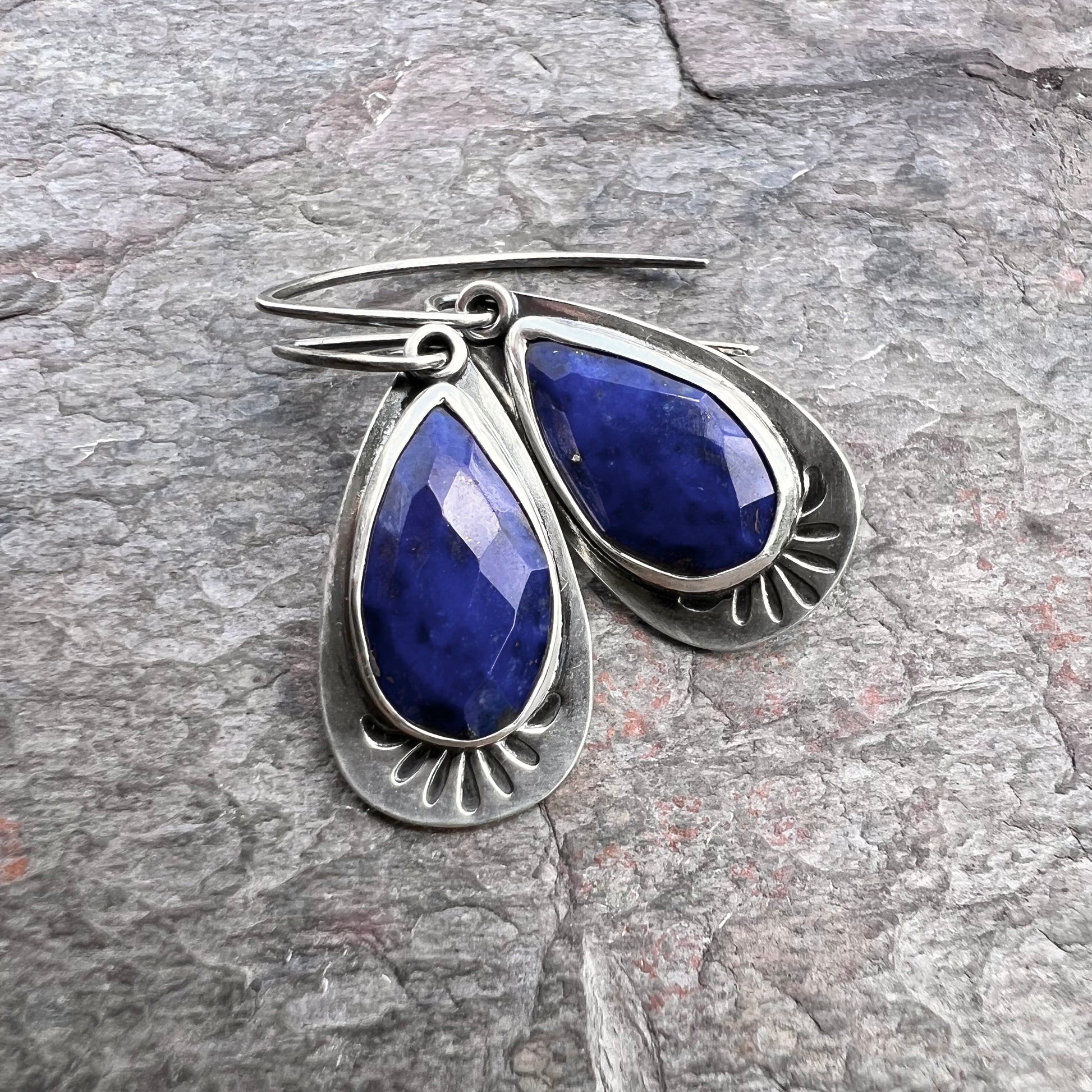 Lapis Lazuli Sterling Silver Teardrop Earrings - Handmade One-of-a-kind Earrings