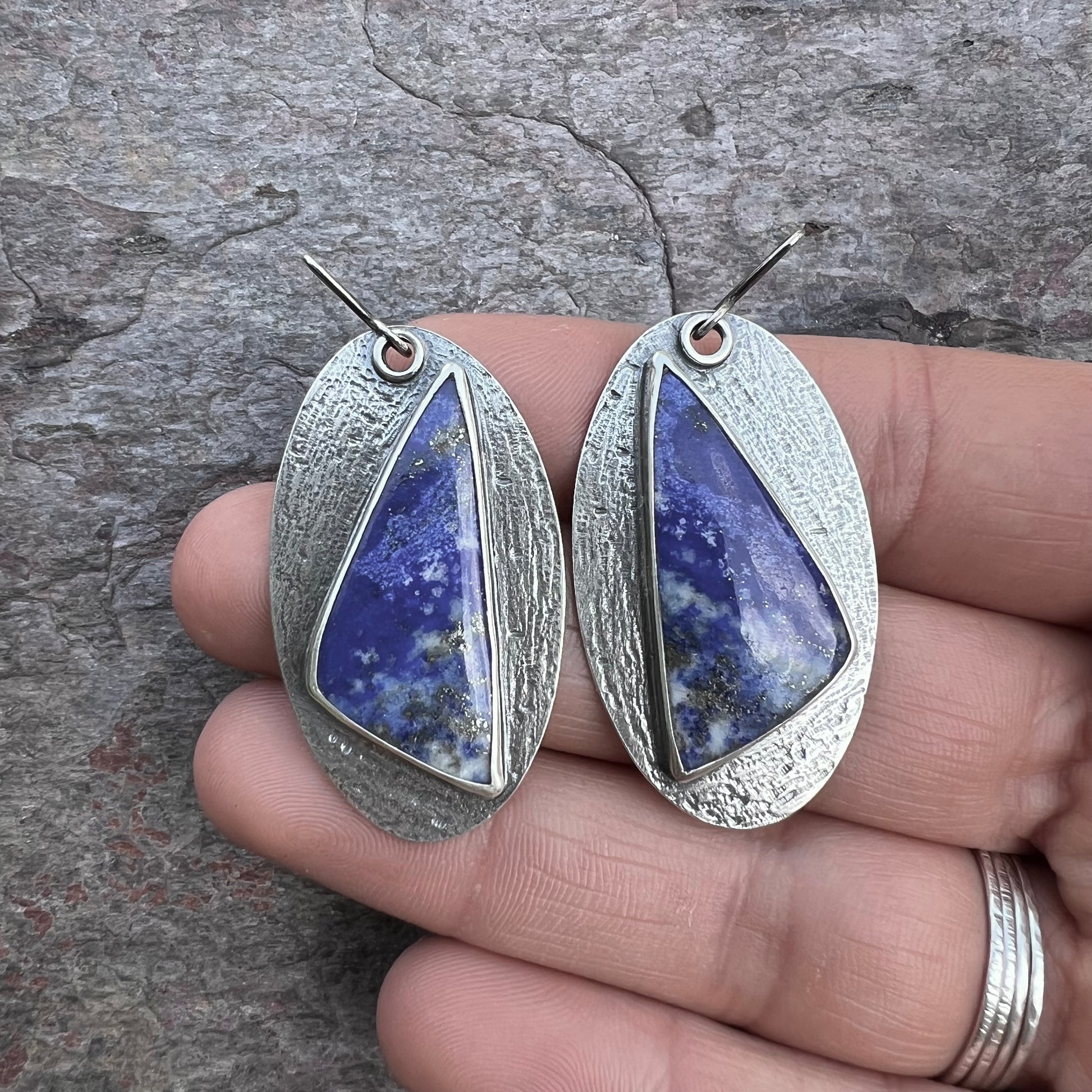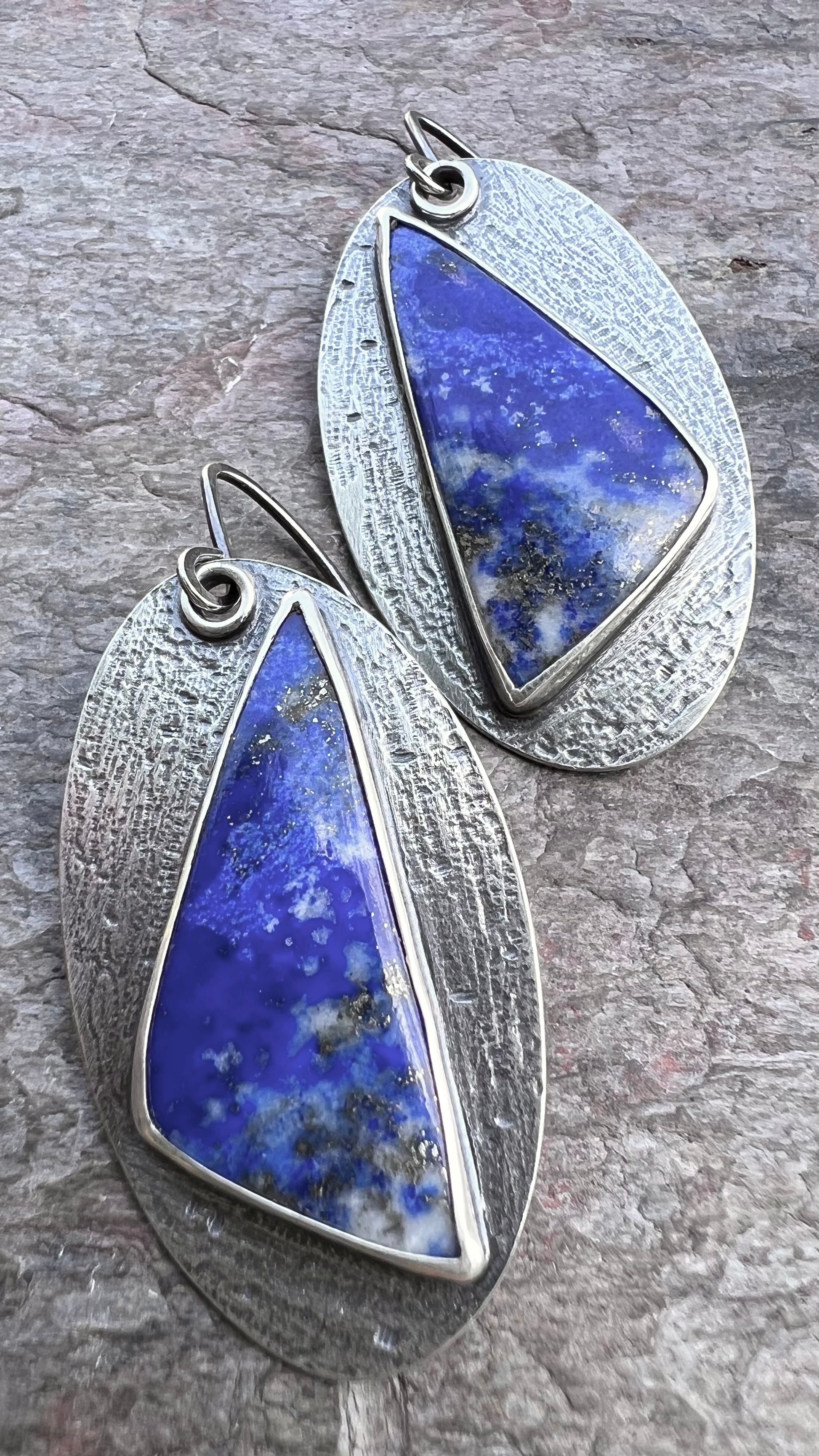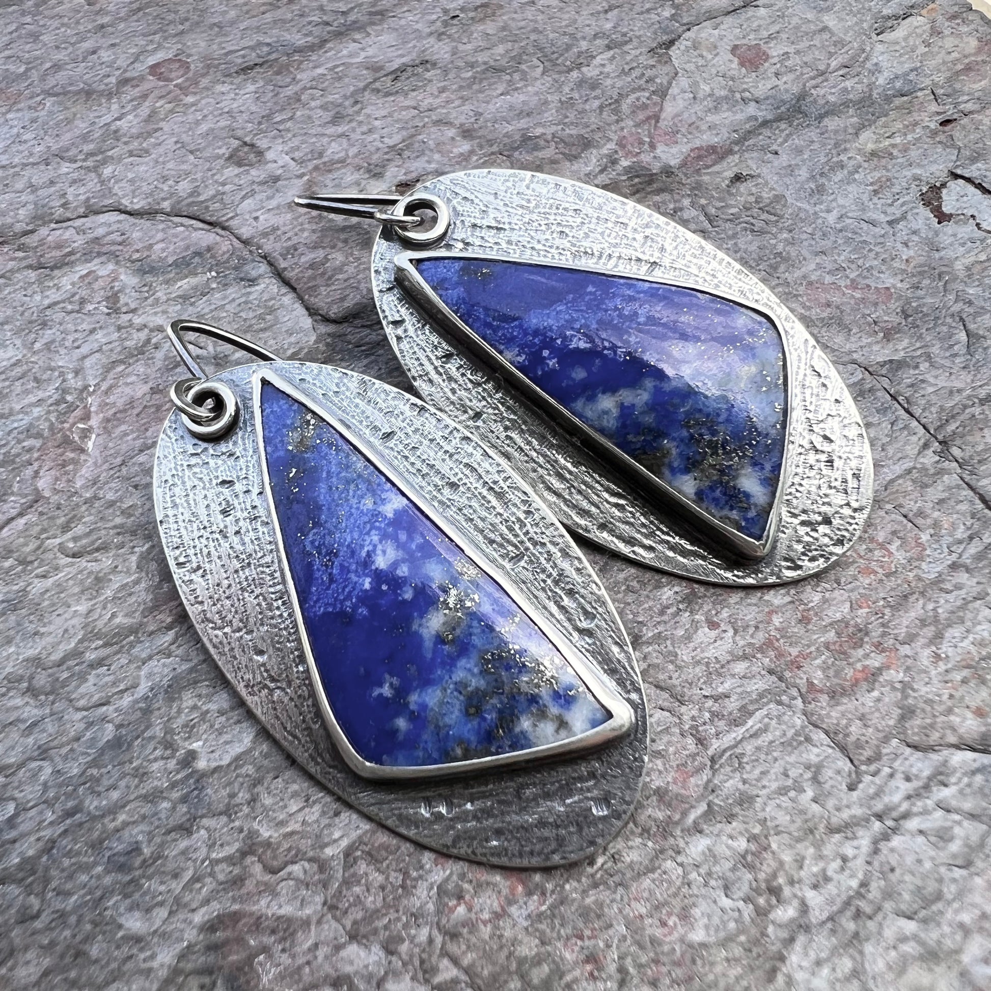 Lapis Lazuli Sterling Silver Statement Earrings - Handmade One-of-a-kind Earrings