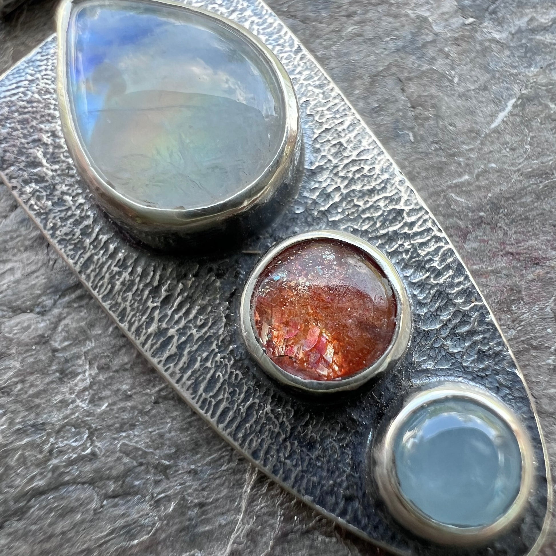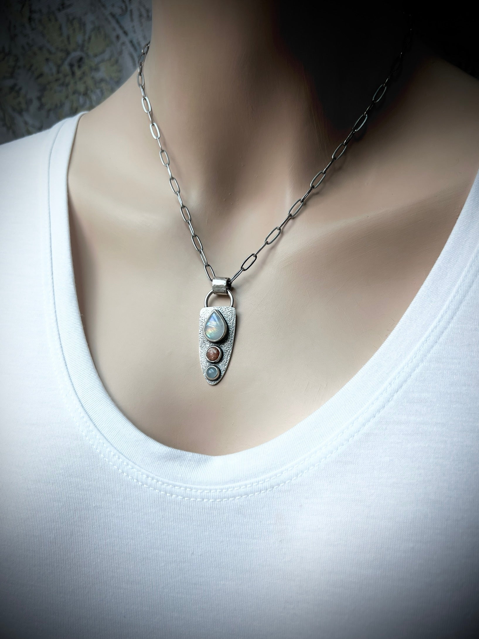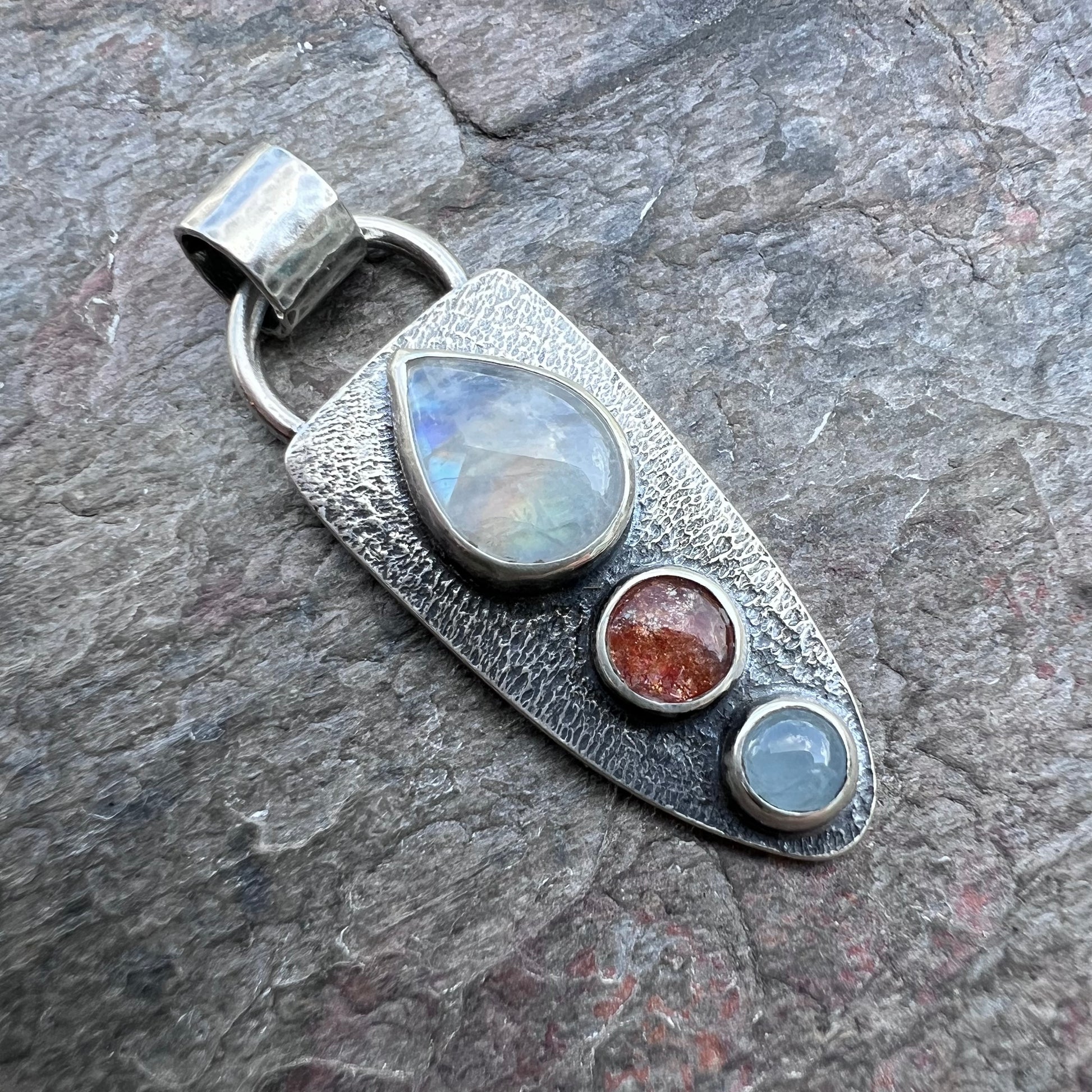 Rainbow Moonstone, Sunstone, and Aquamarine Pendant - Handmade One-of-a-kind Pendant