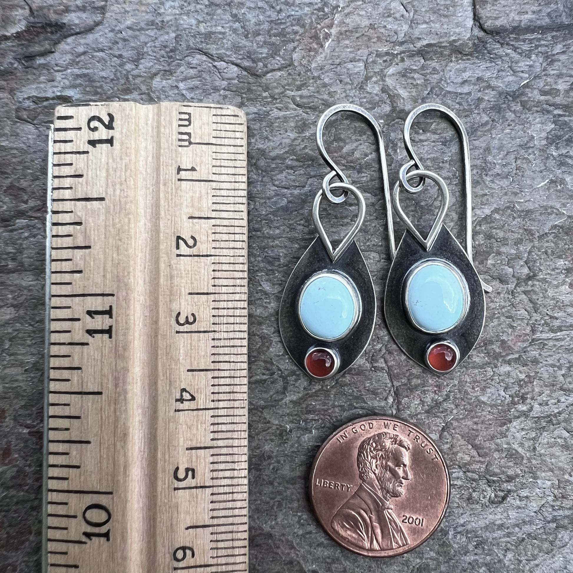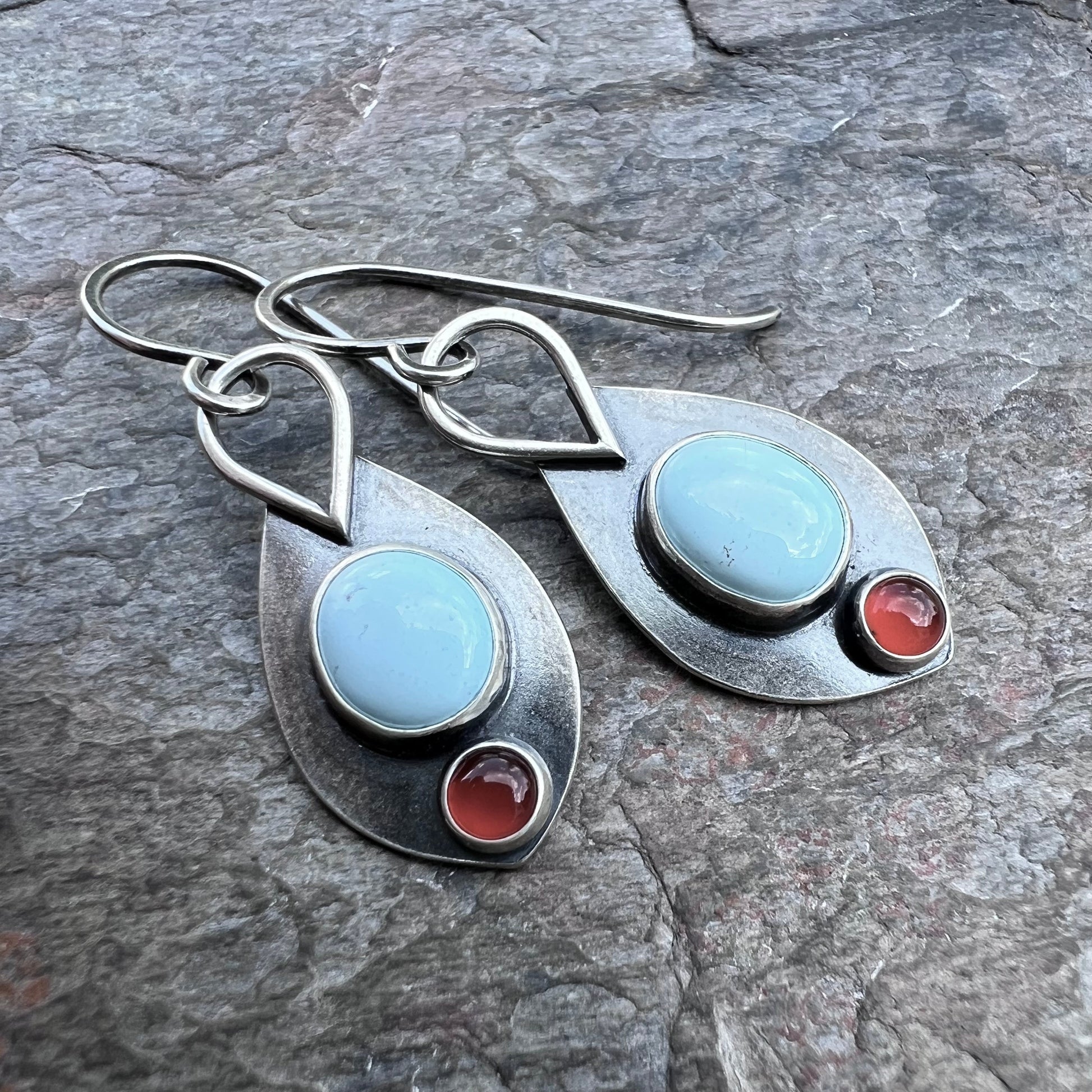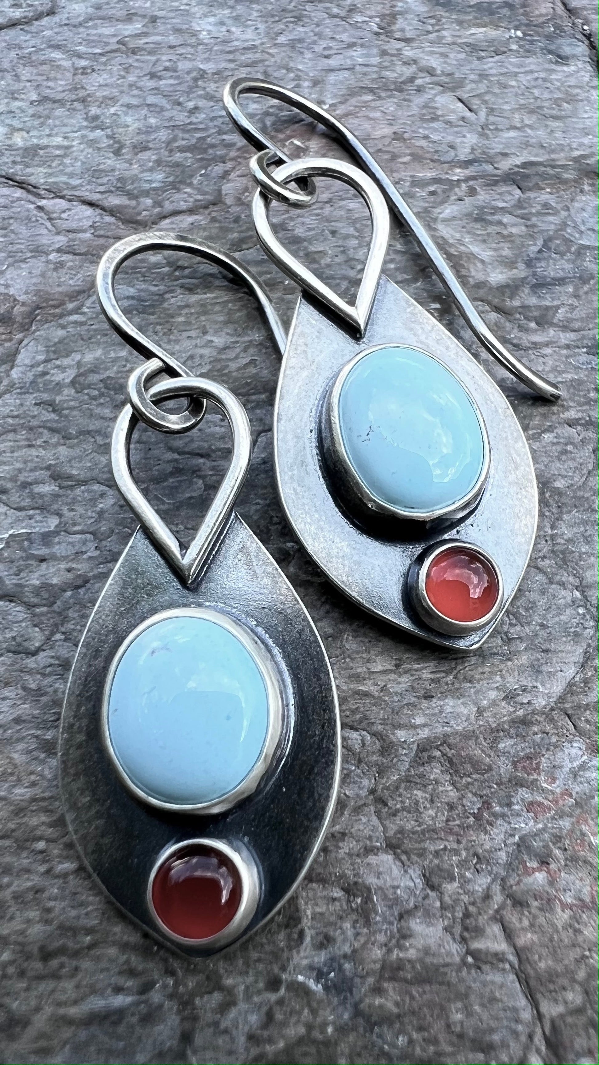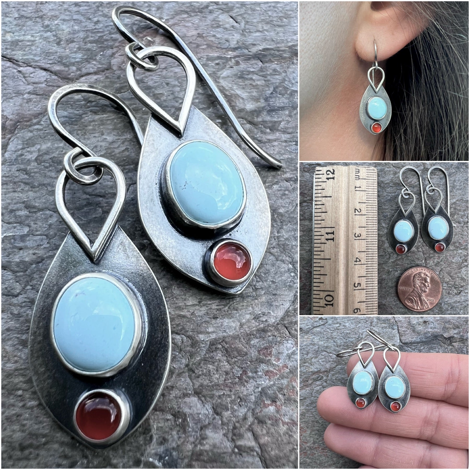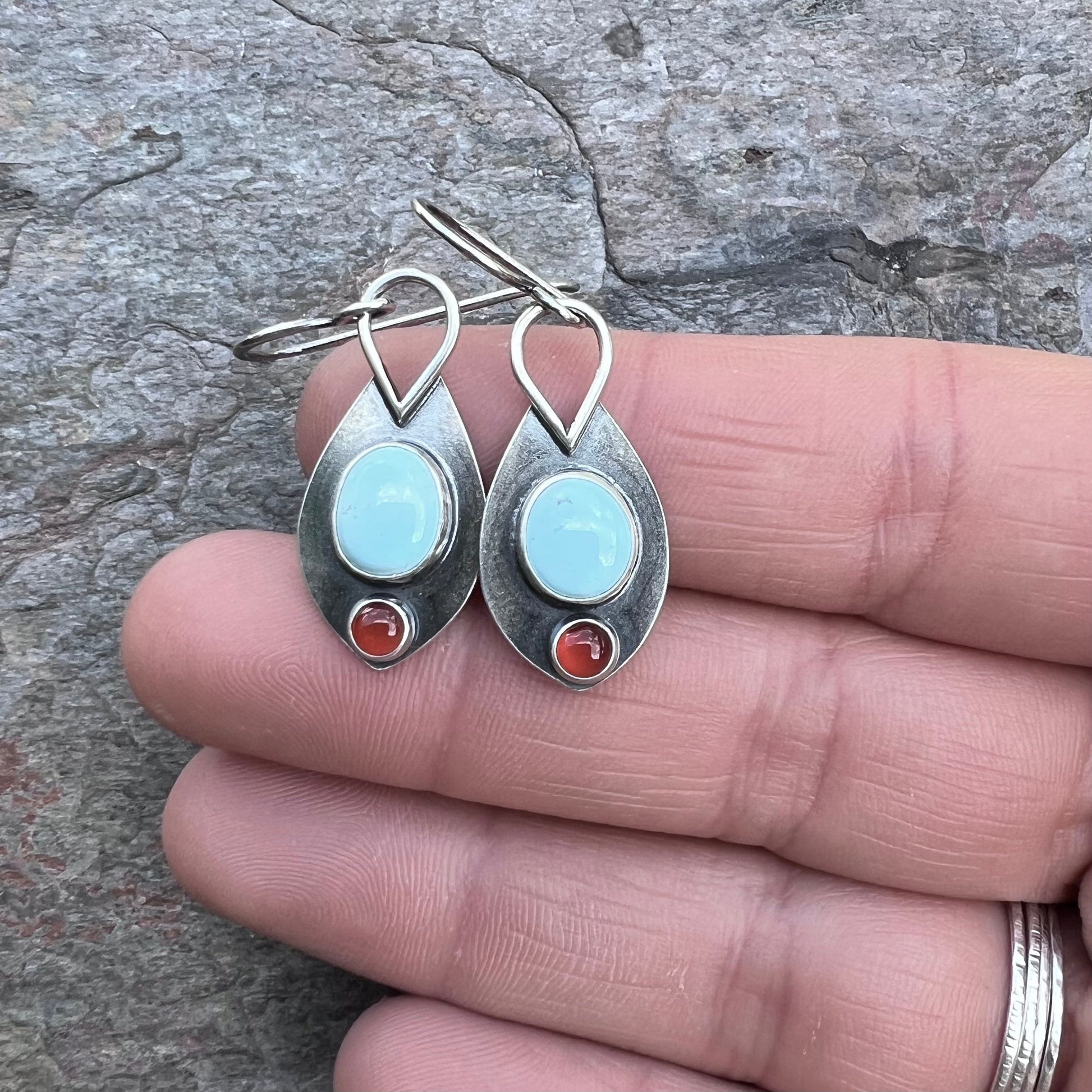 SOLD Turquoise and Carnelian Sterling Silver Earrings - Handmade One-of-a-kind Earrings