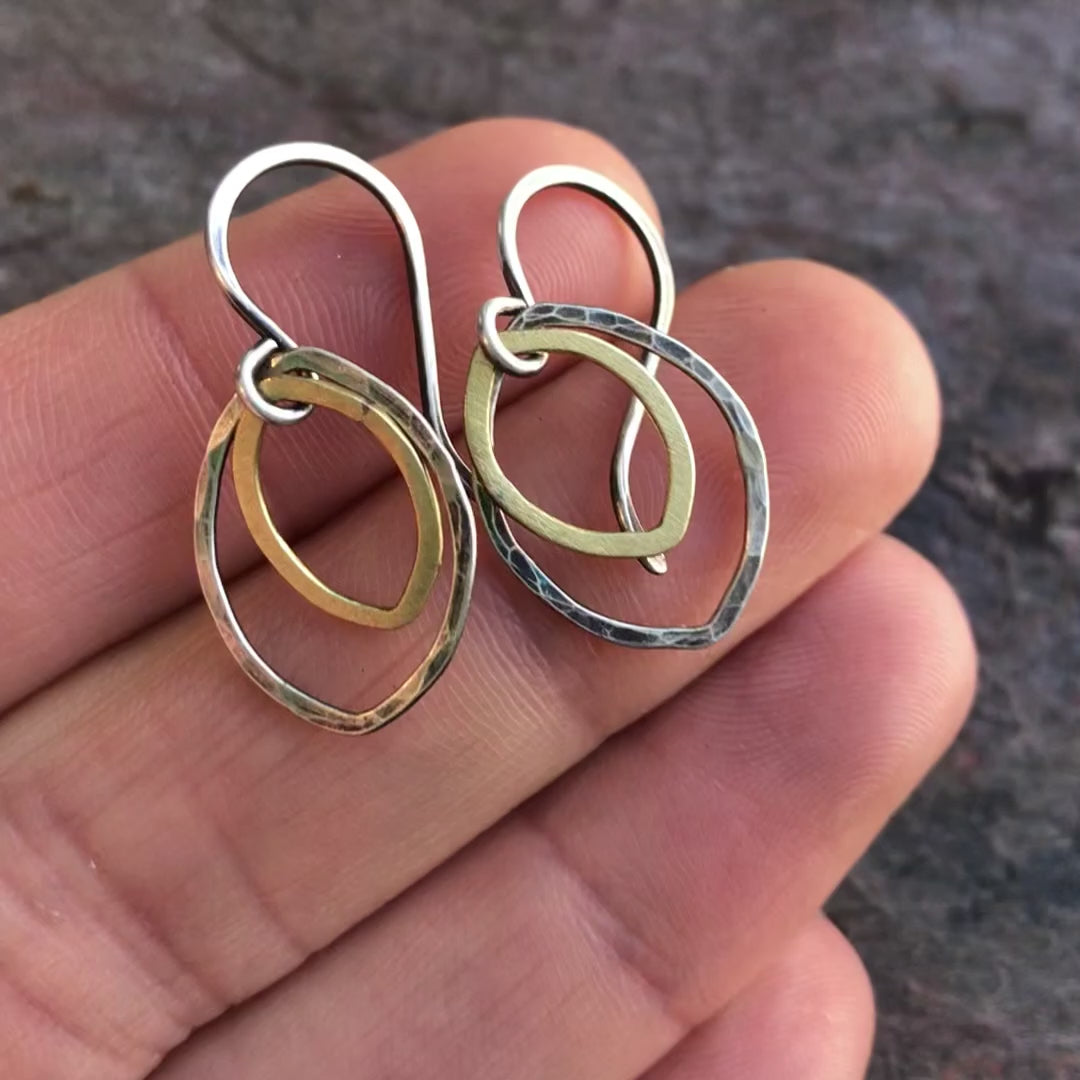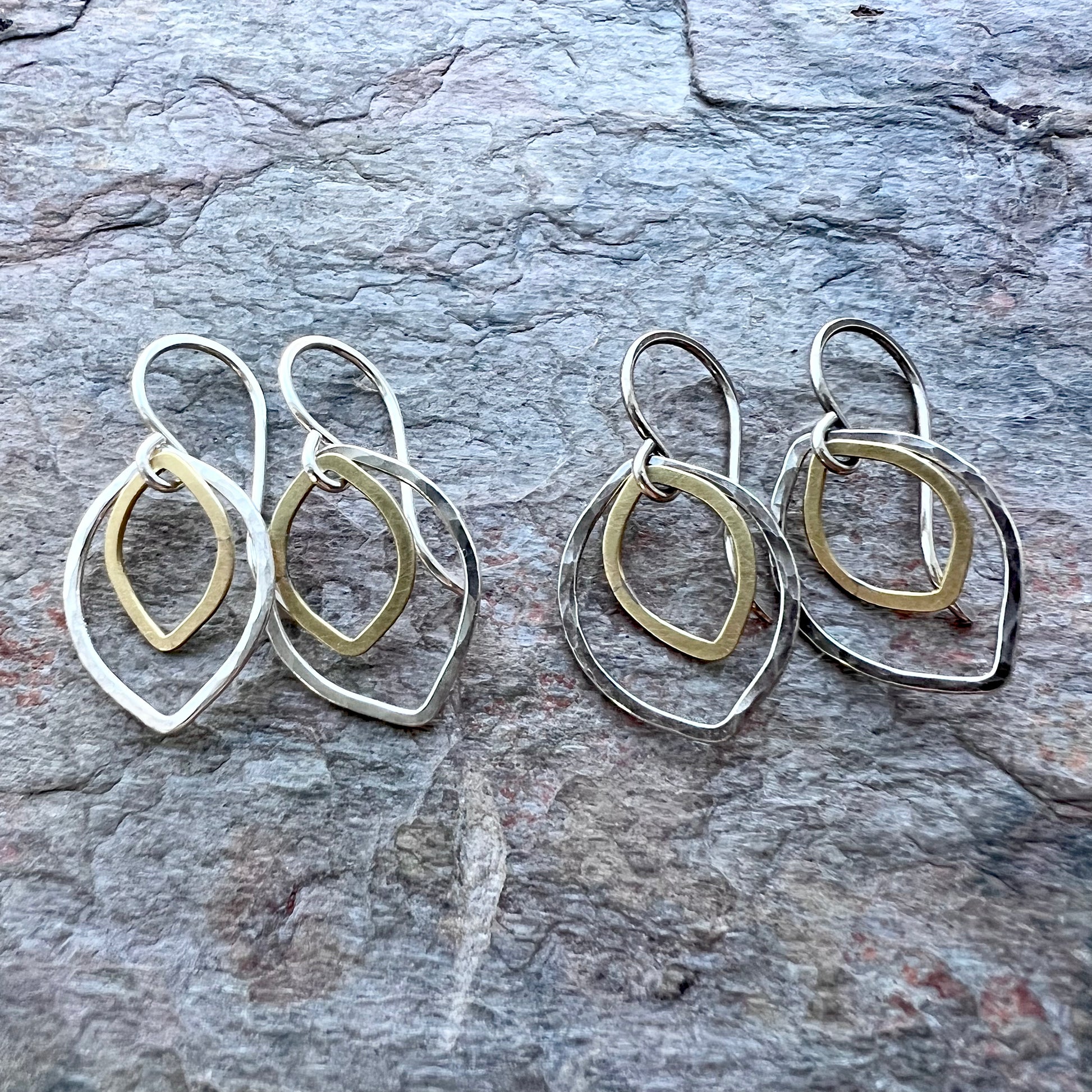 Sterling Silver and Brass Petal Earrings - Hammered Sterling Silver and Brass on Handmade Sterling Silver Earwires