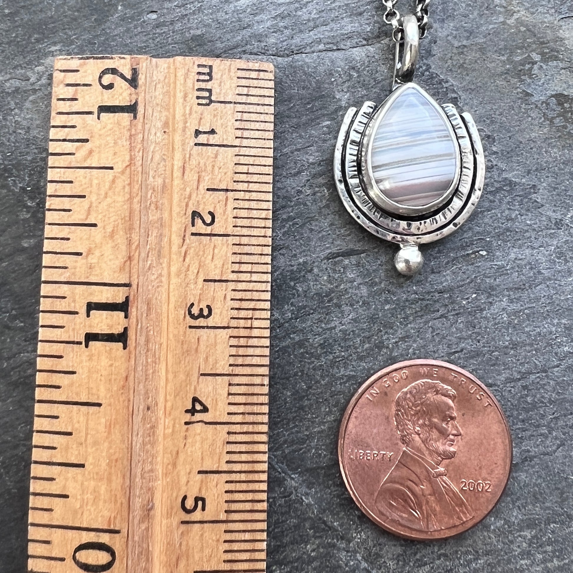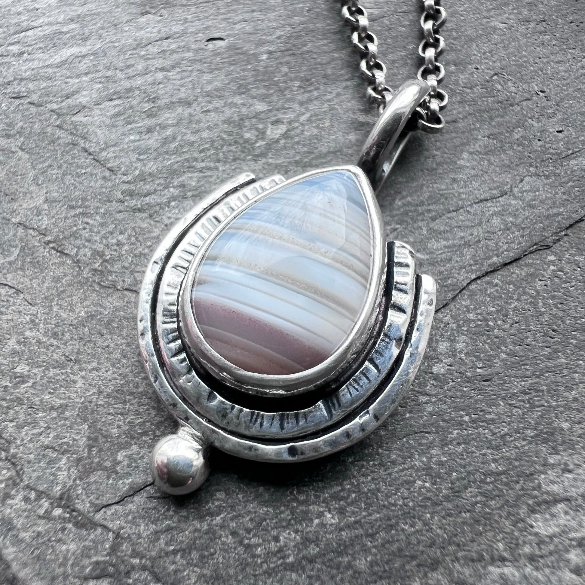 Sterling Silver Banded Agate Necklace | Natural Stone Teardrop Pendant