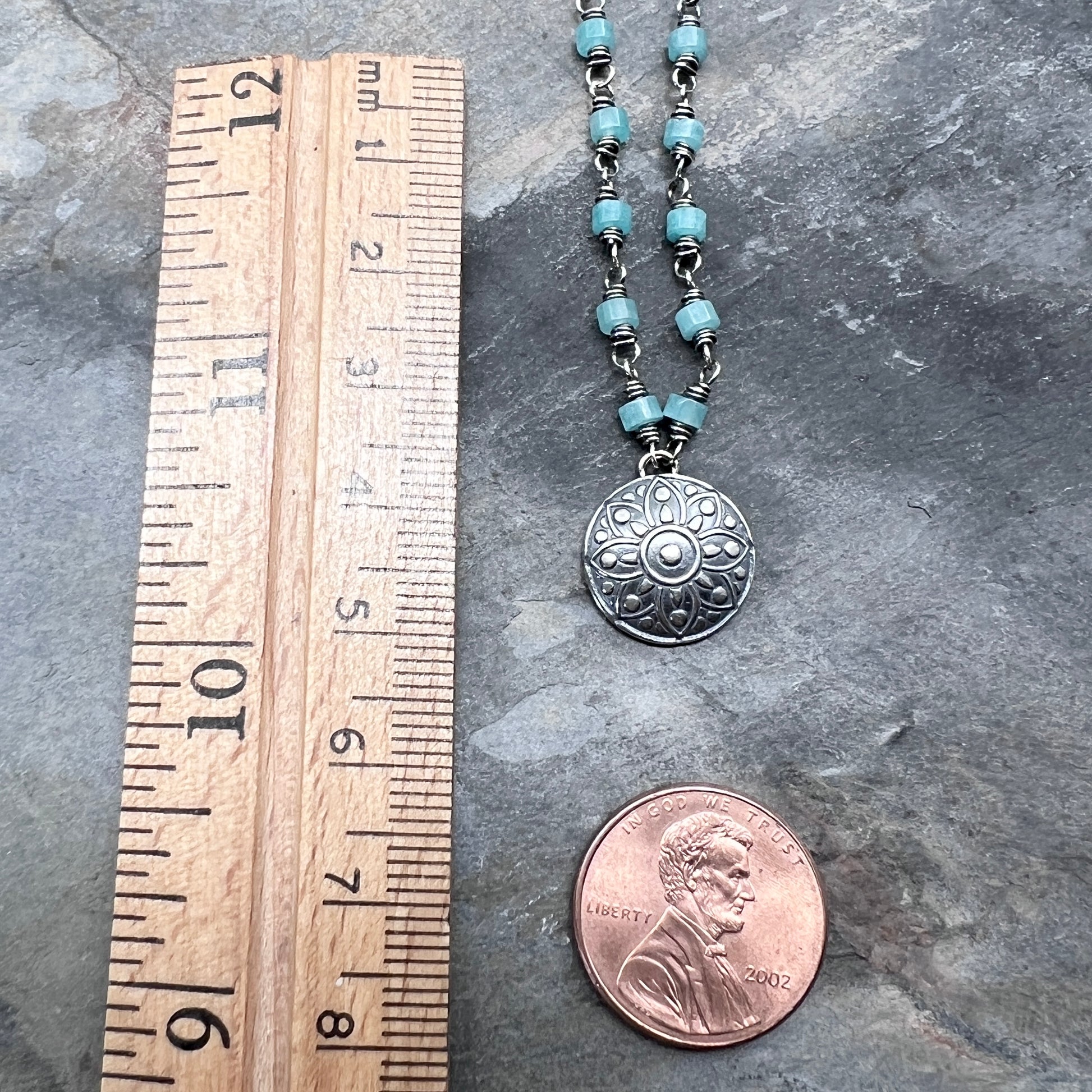 Sterling Silver Medallion and Amazonite Necklace | Natural Aqua Stones with Circle Pendant