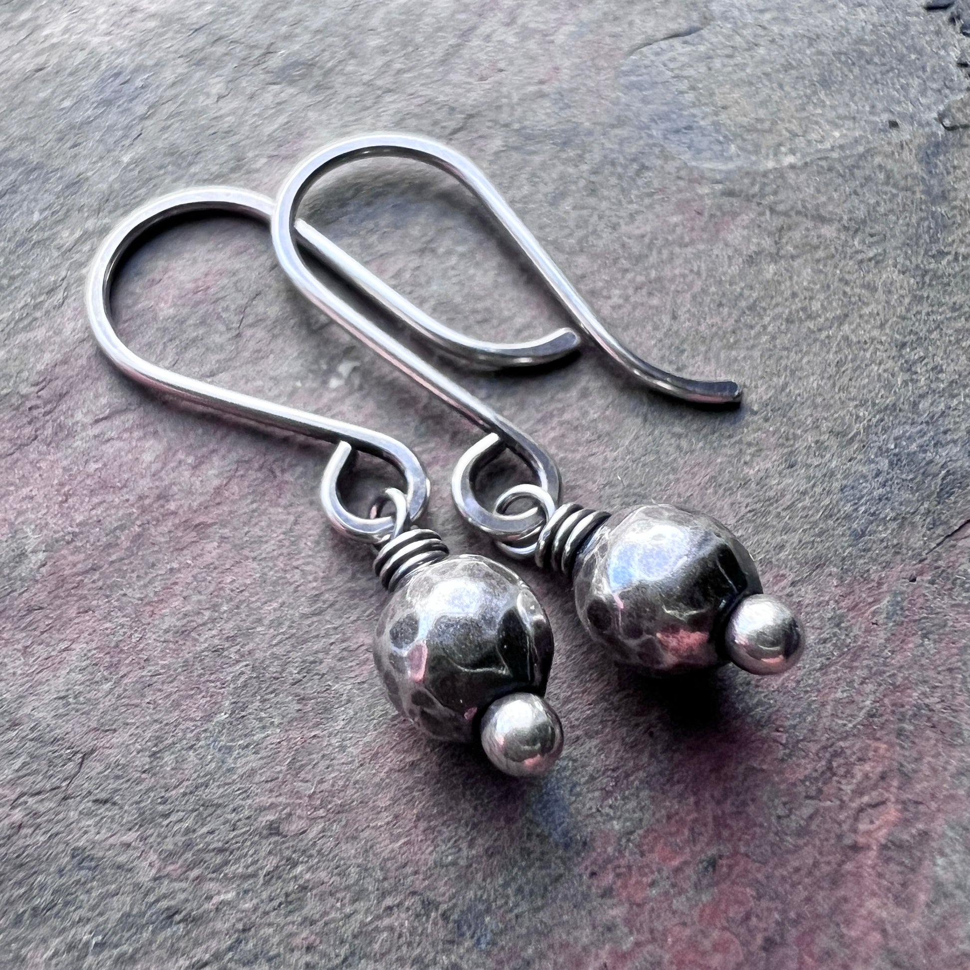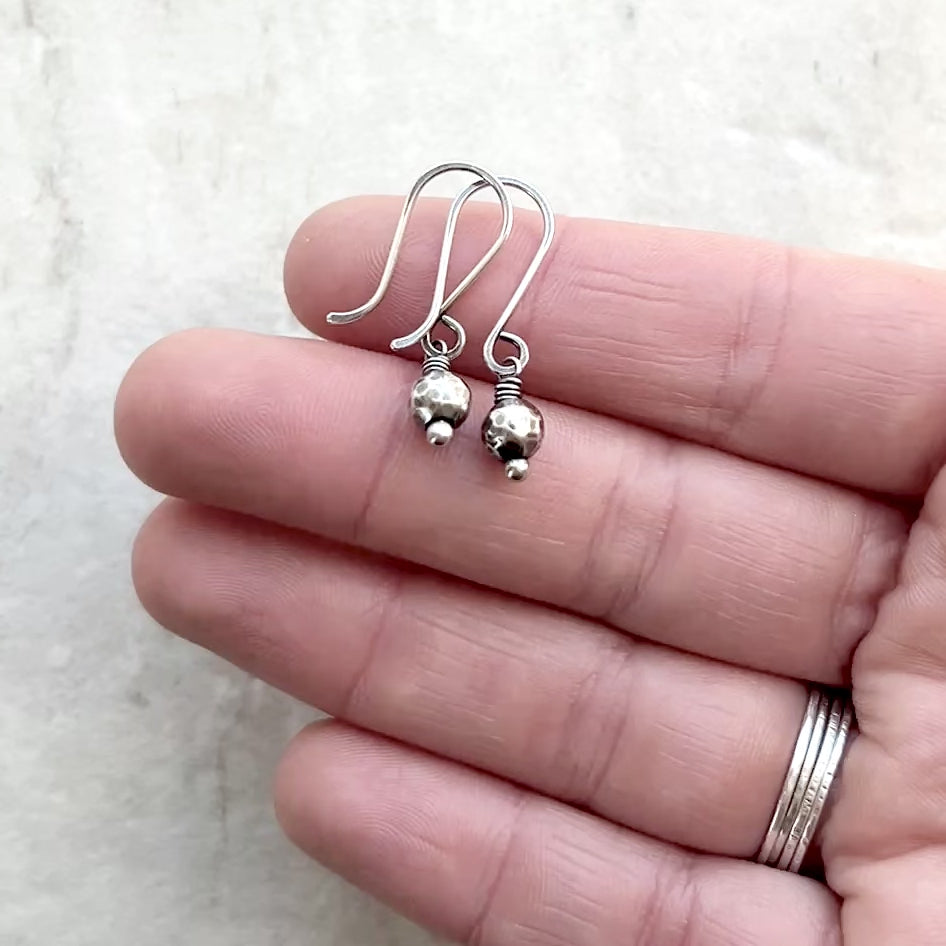Sterling Silver Hammered Ball Earrings | Minimalist Small Dangles