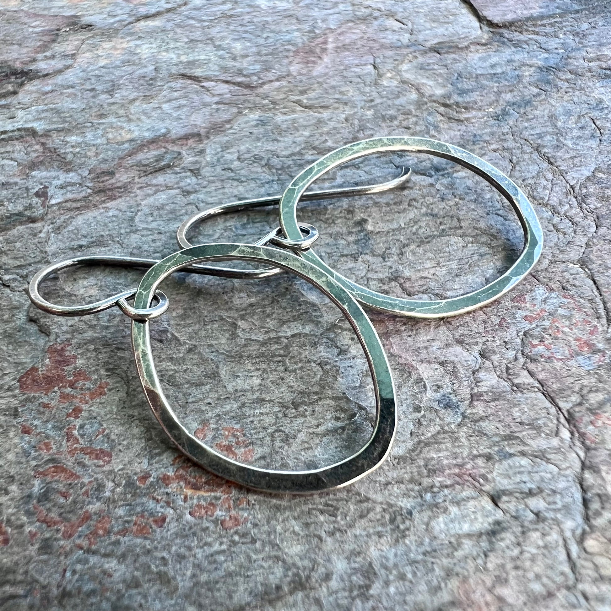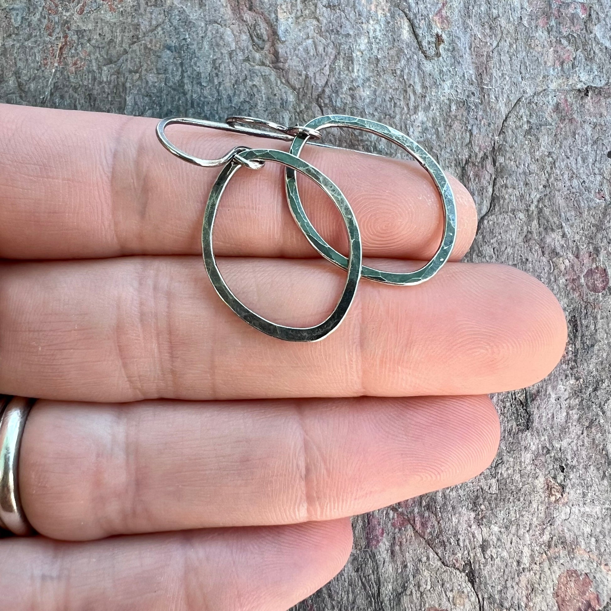 Sterling Silver Hammered Earrings - Handmade Sterling Silver Freeform Organic Oval Earrings