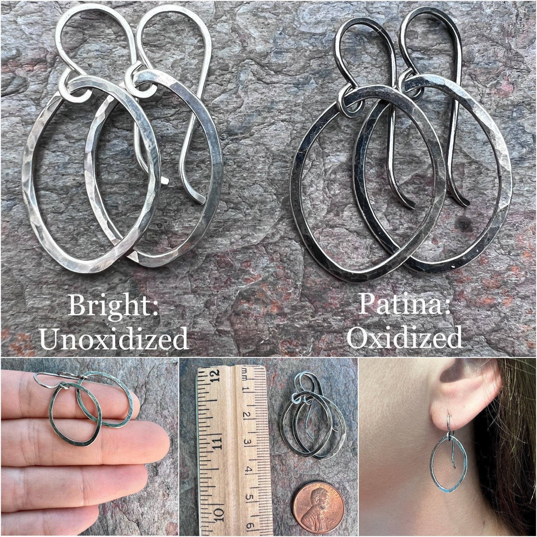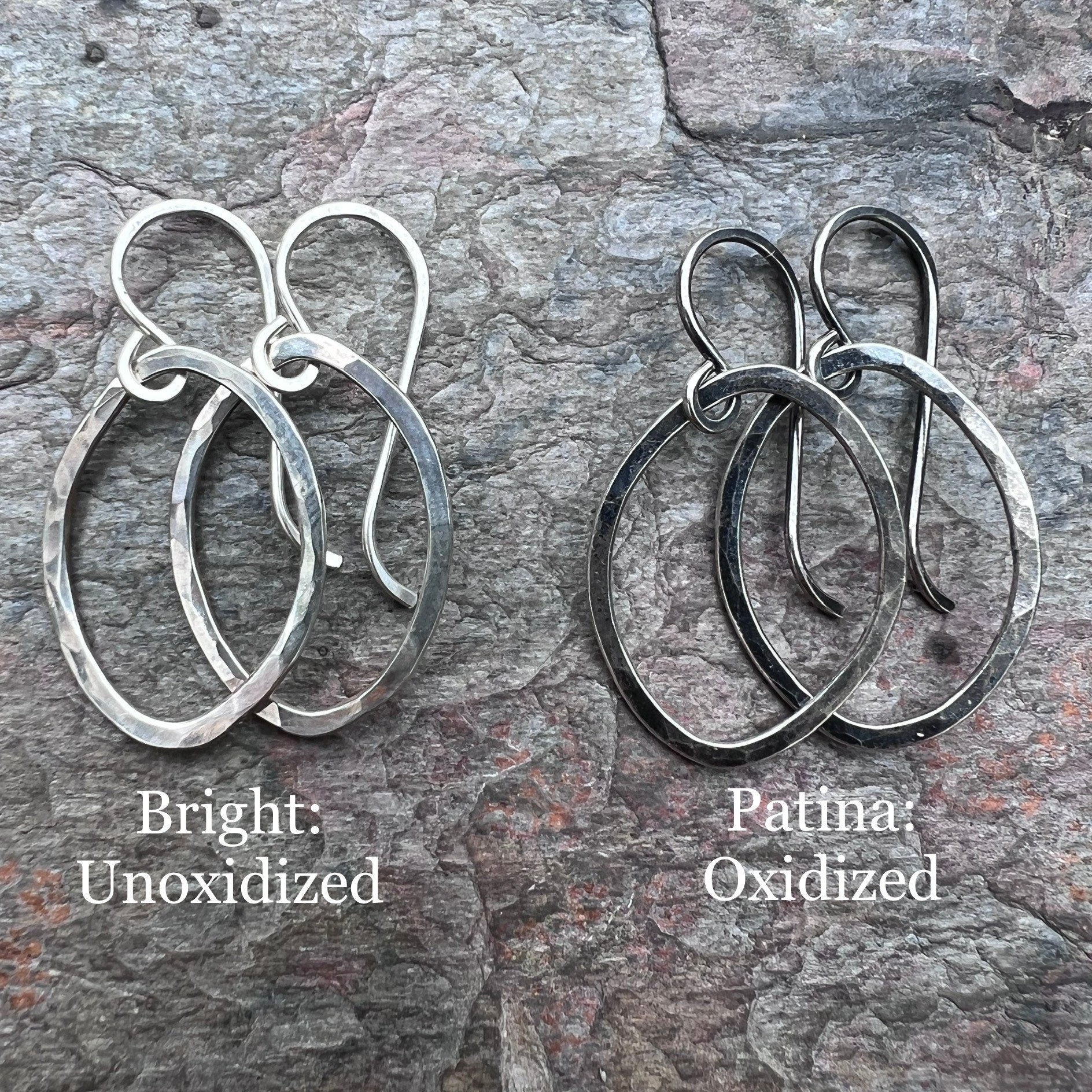 Select your desired finish when ordering. Earrings in the main photograph are in the "Patina: Oxidized" finish.