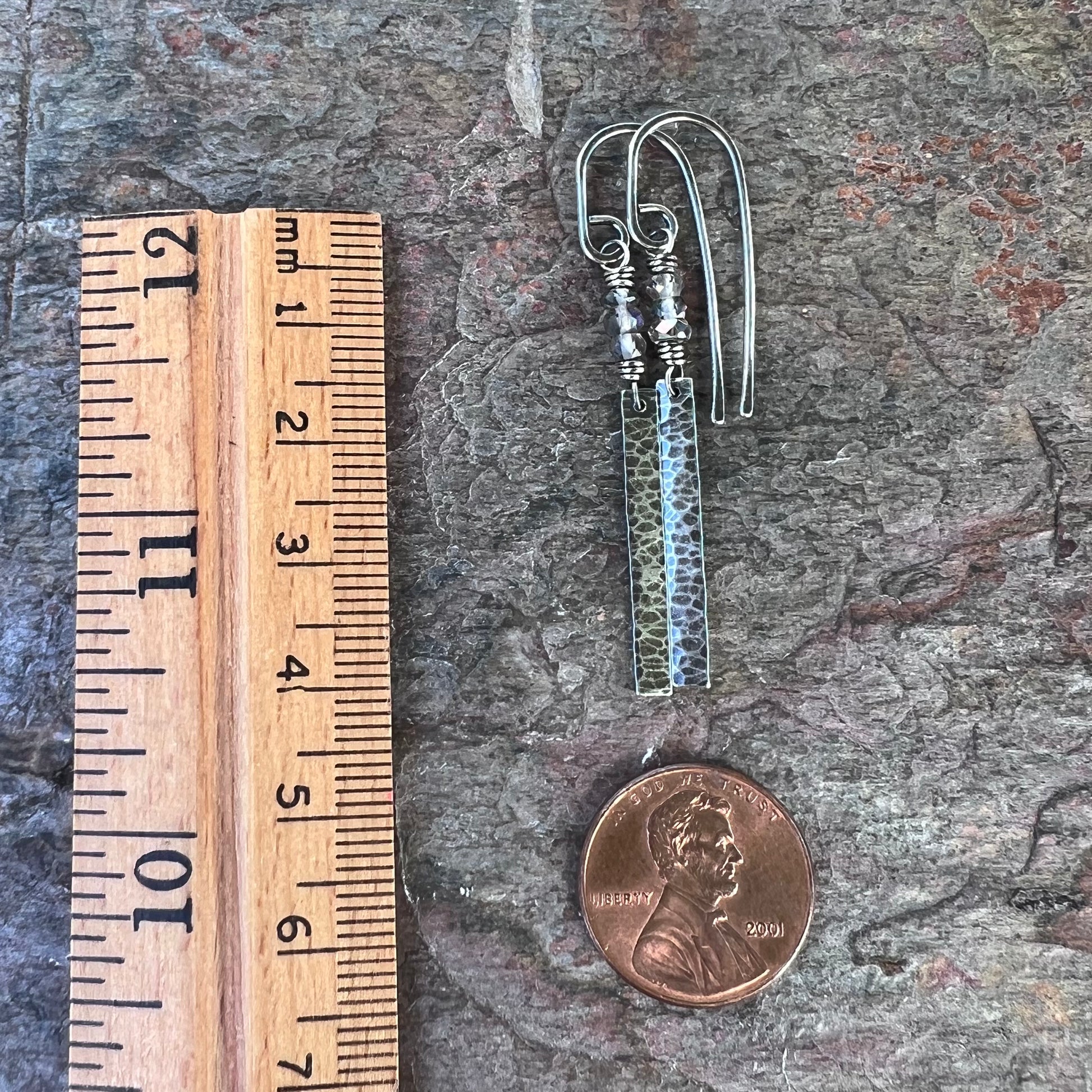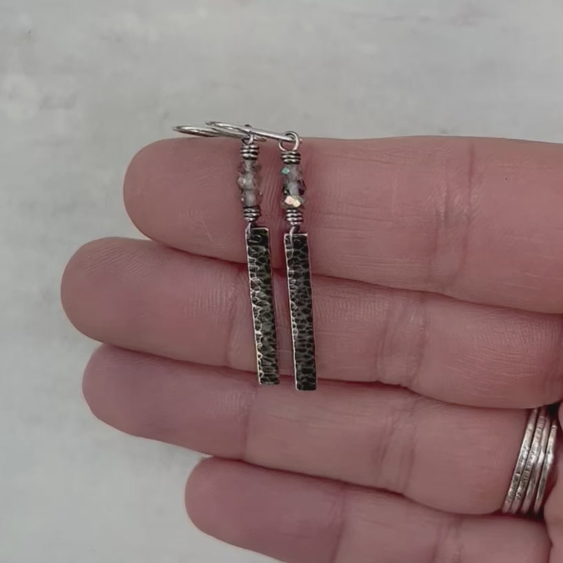 Sterling Silver Mystic Topaz Earrings - Genuine Topaz and Hammered Sterling Silver Bar Earrings