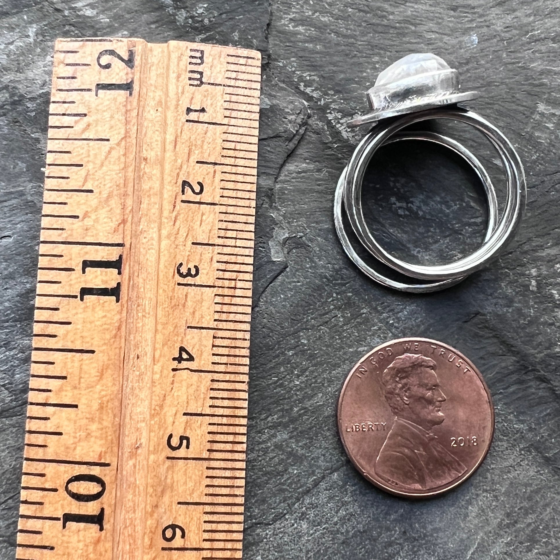 Ring Size: Approximately size 8 as sized on a standard US ring sizer