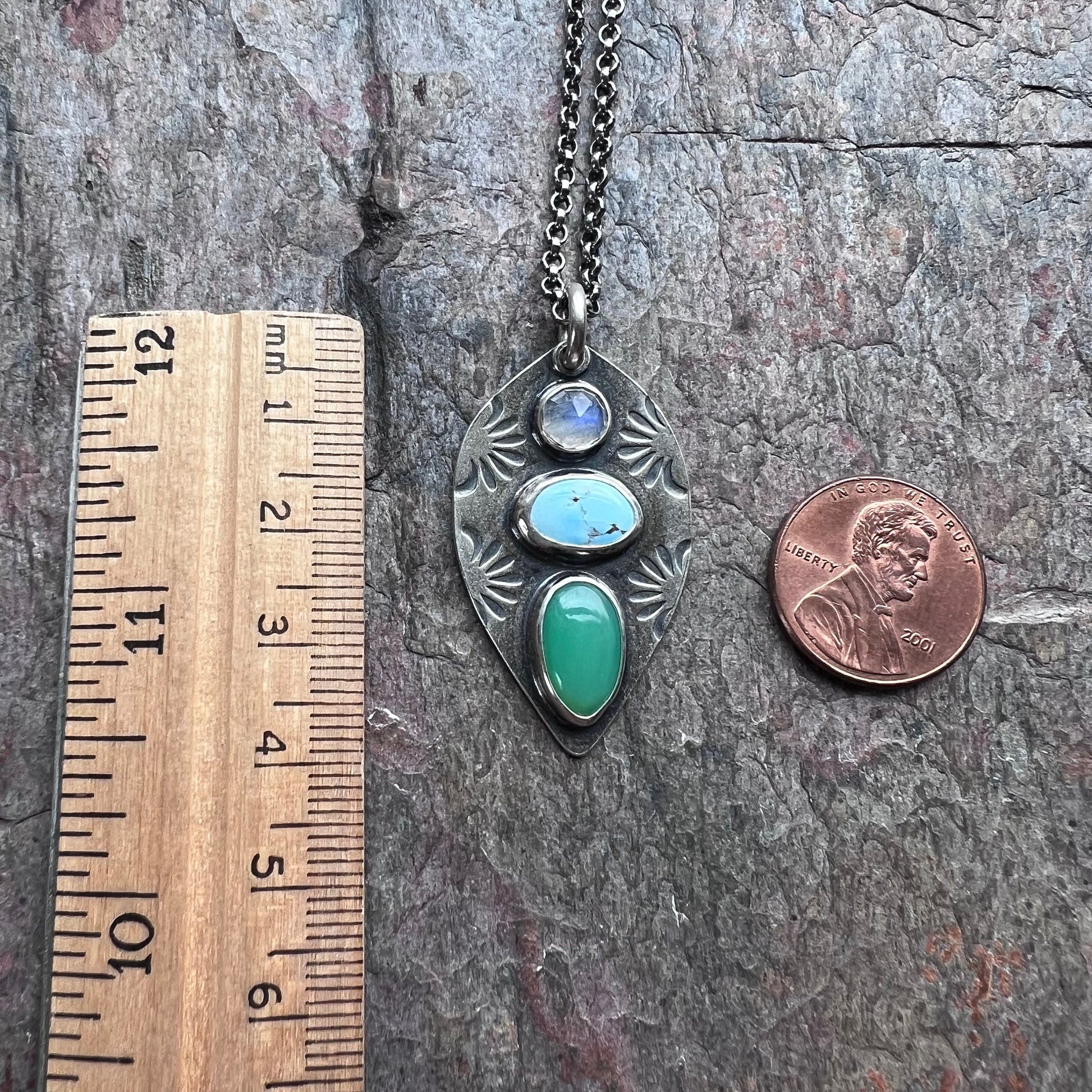 Sterling Silver Rainbow Moonstone, Turquoise, and Chrysoprase Necklace - Handmade One-of-a-kind Pendant on Sterling Silver Chain