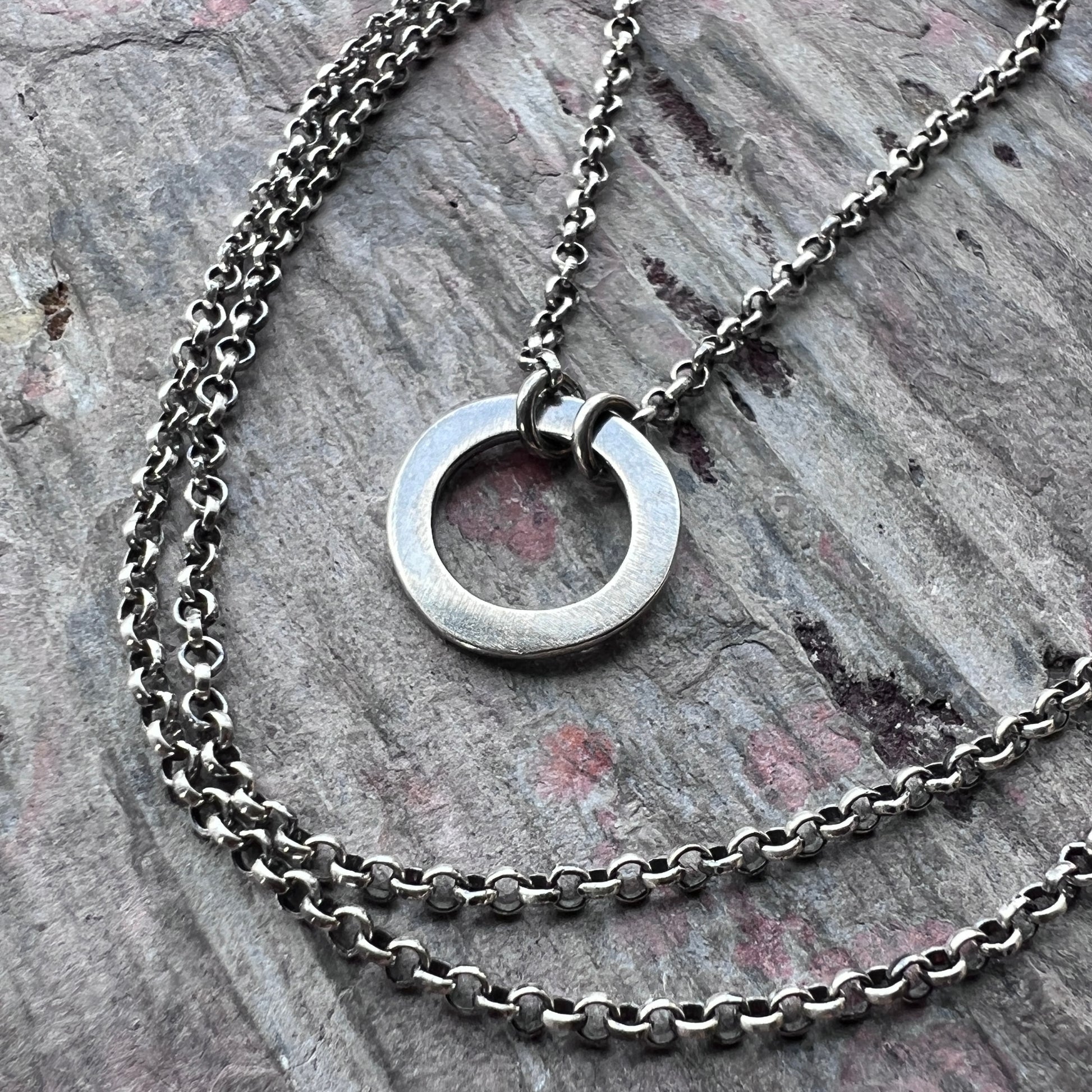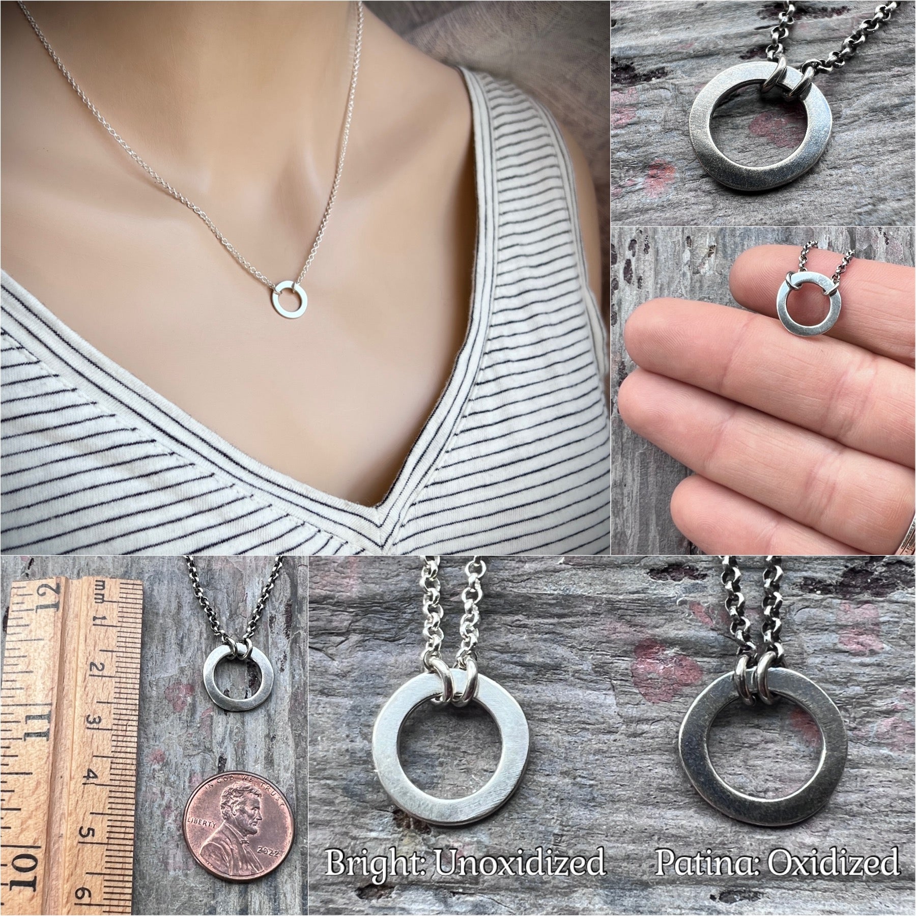 Sterling Silver Small Circle Necklace | Minimalist Organic Ring Pendant Necklace