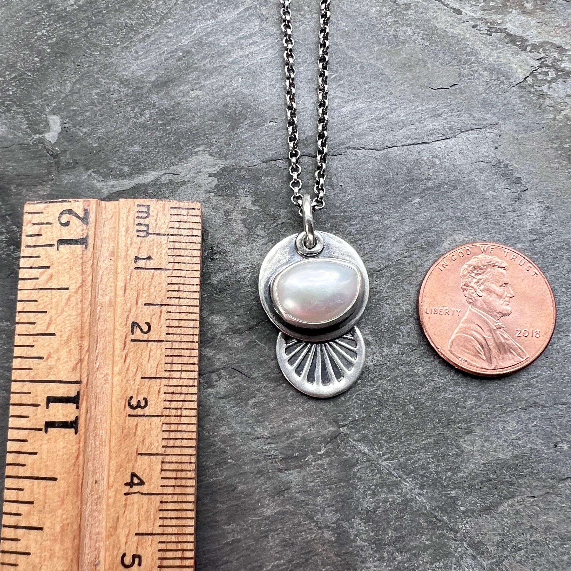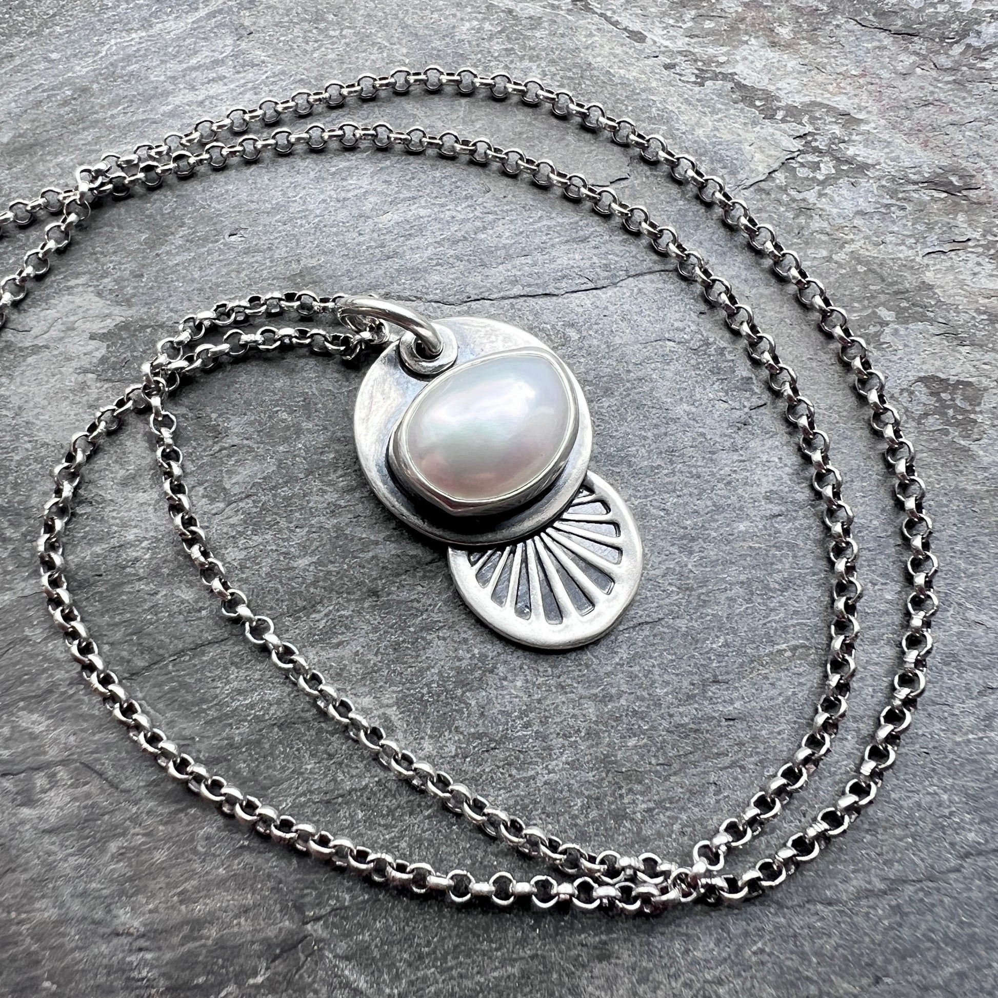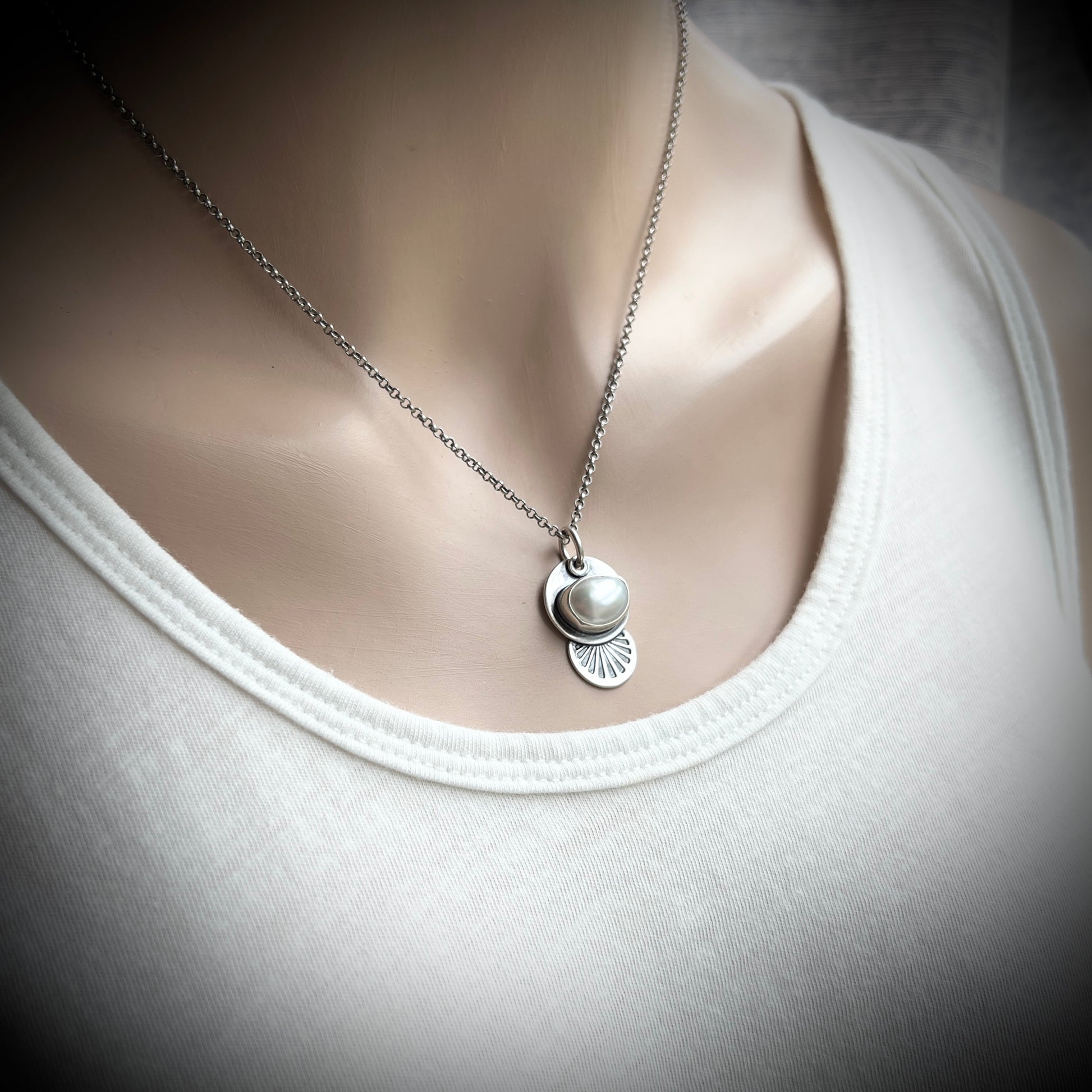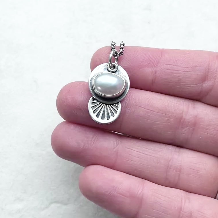 Sterling Silver Pearl Necklace | Natural Baroque Pearl Stamped Pendant