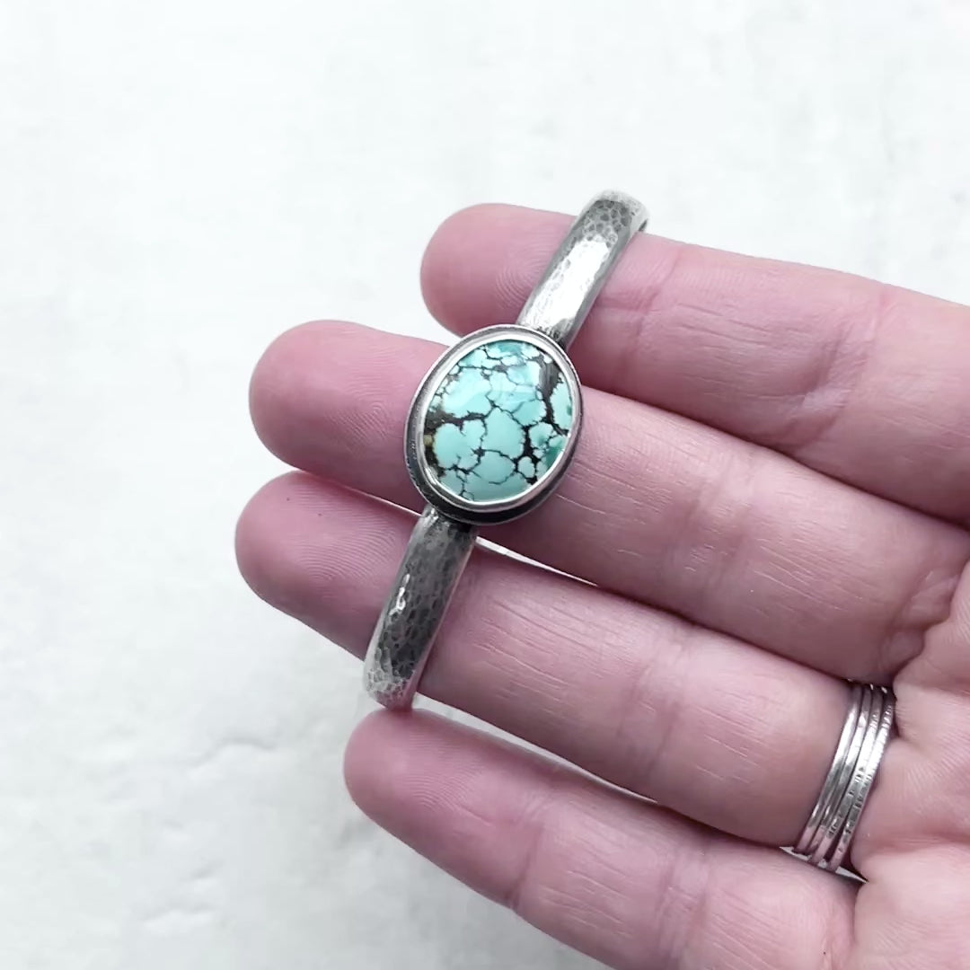 Sterling Silver Turquoise Bracelet | Genuine Natural Turquoise Hammered Cuff with Toggle Clasp