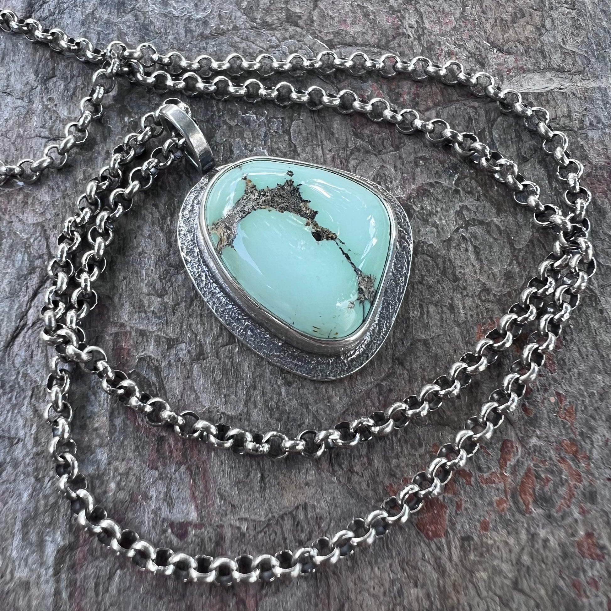 Sterling Silver Turquoise Freeform Necklace - One-of-a-Kind Turquoise Pendant on Sterling Silver Chain