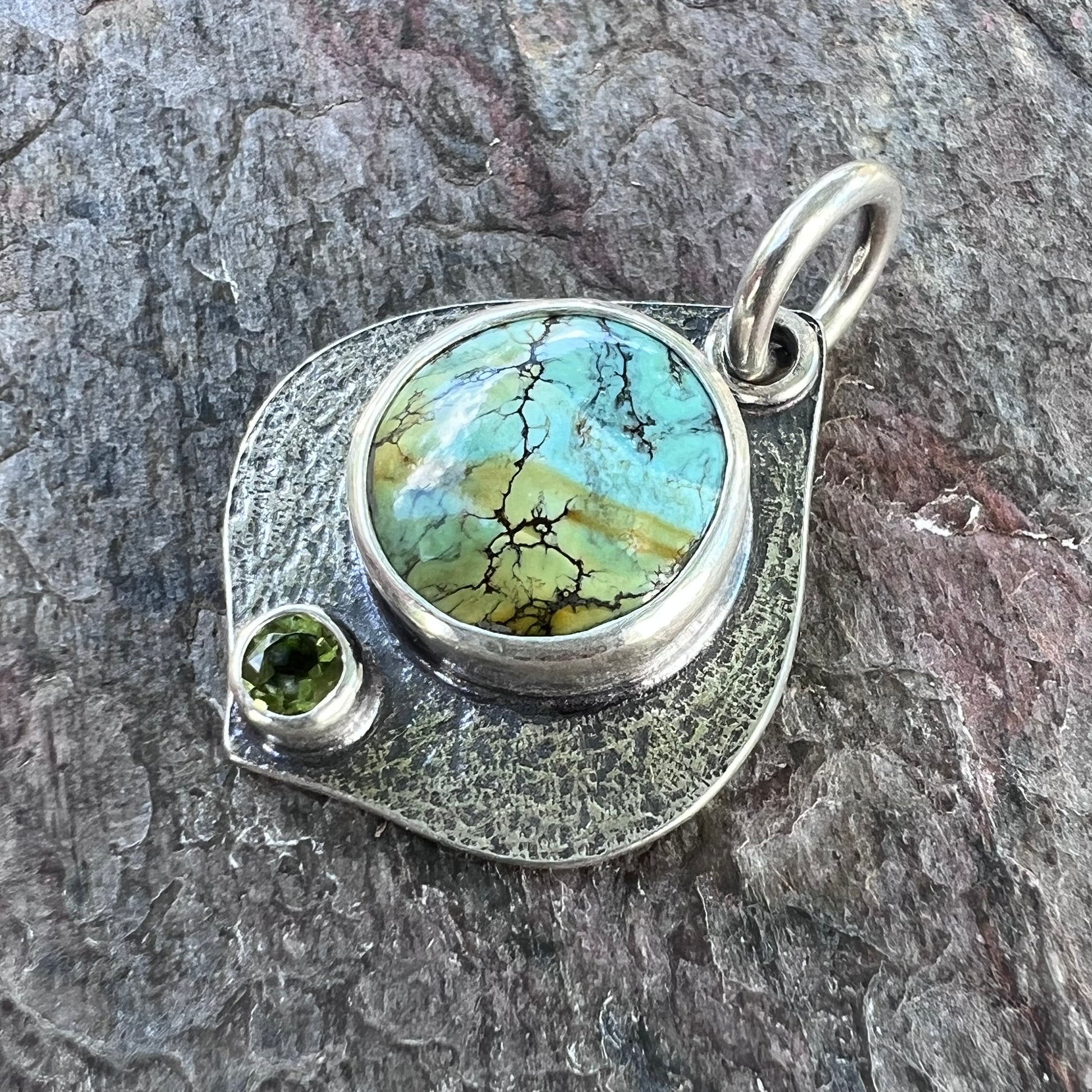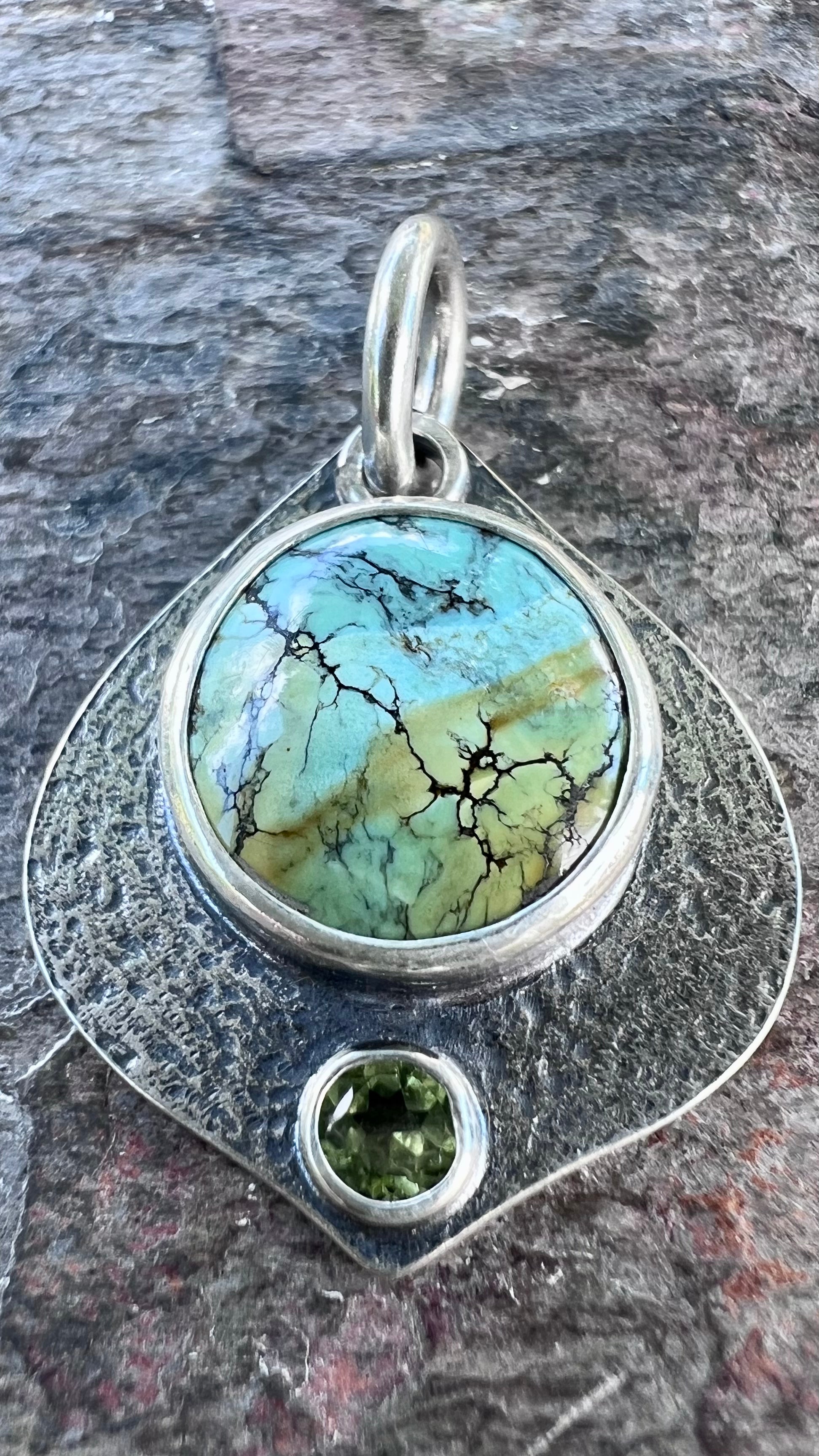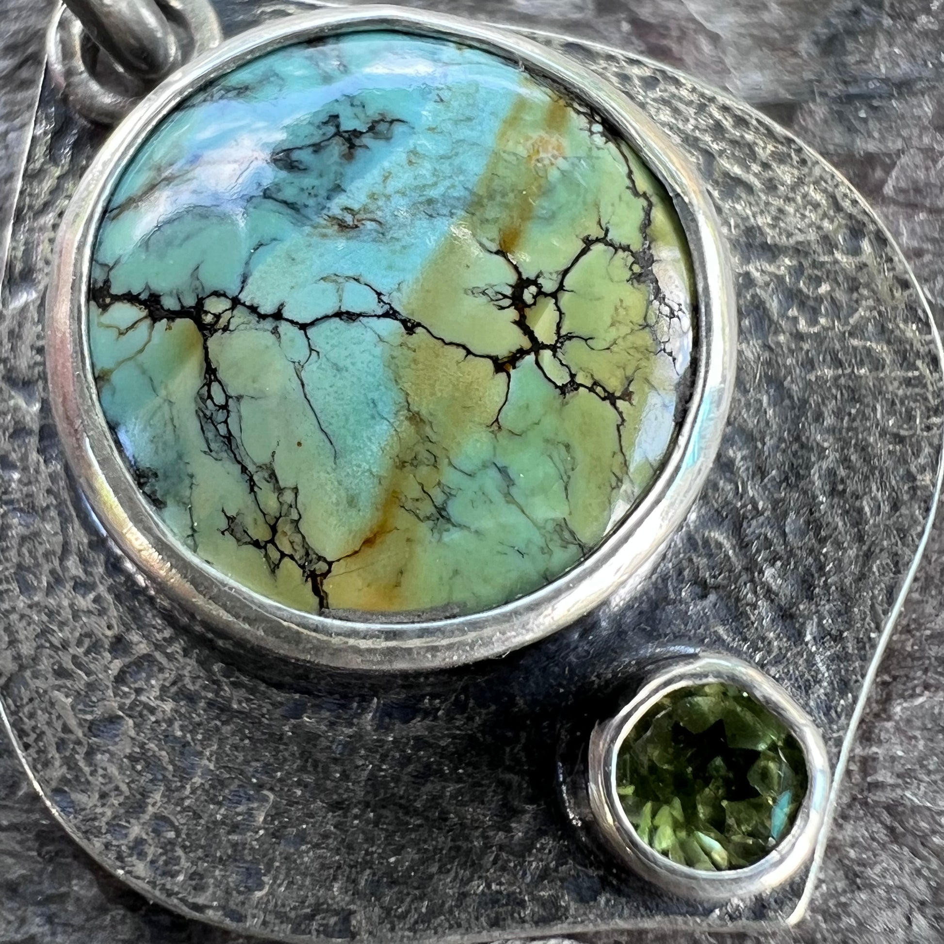 Turquoise and Peridot Sterling Silver Pendant - One-of-a-Kind Handmade Pendant