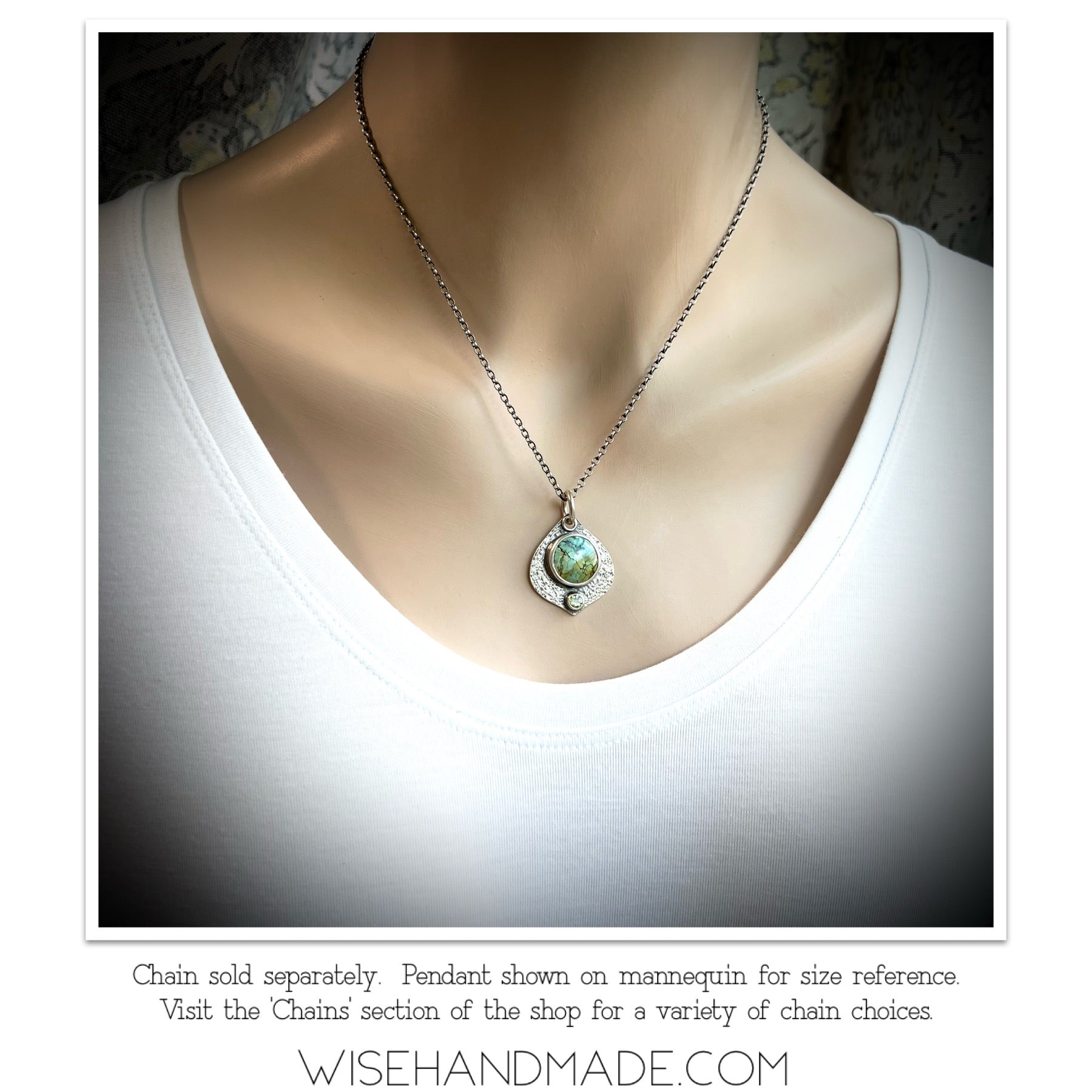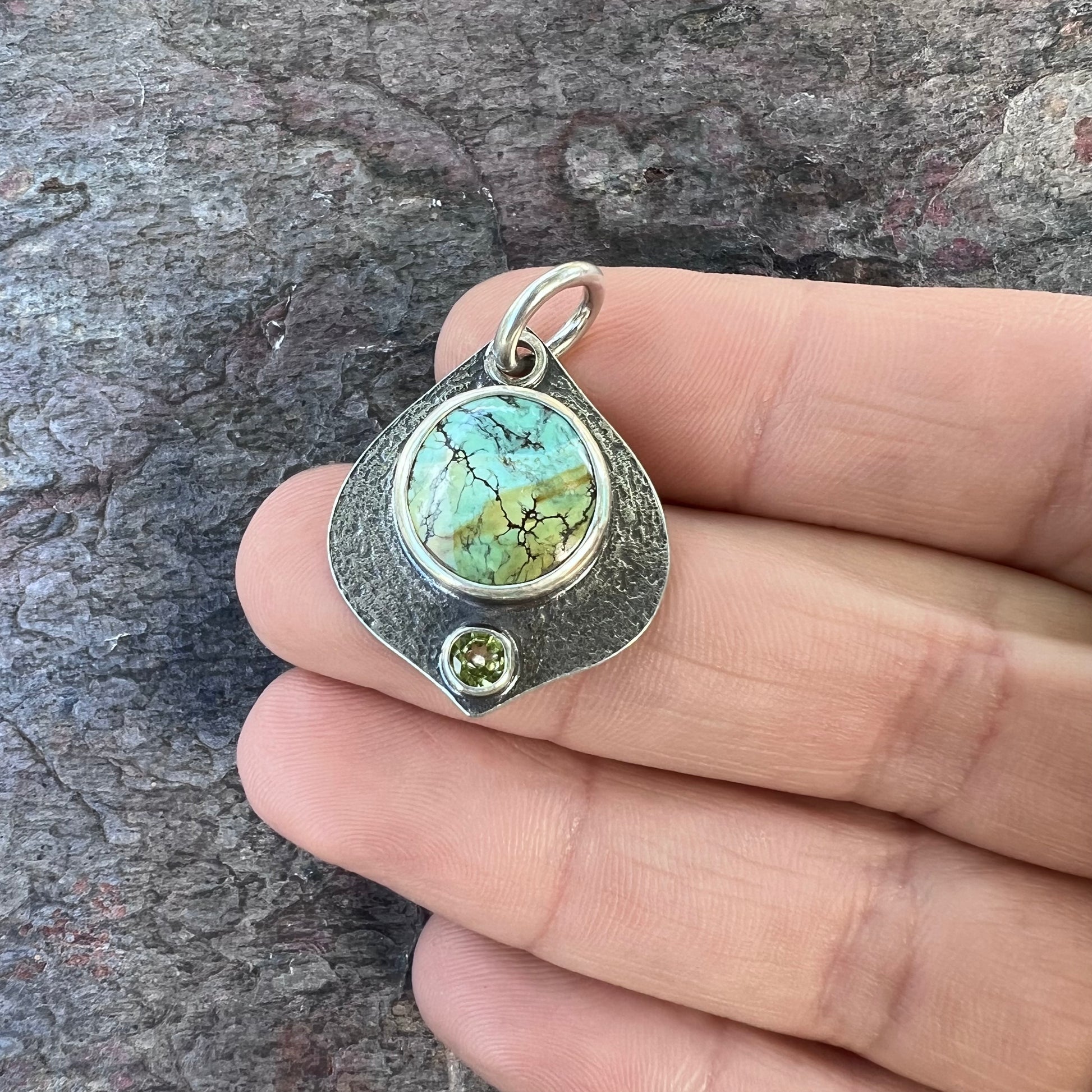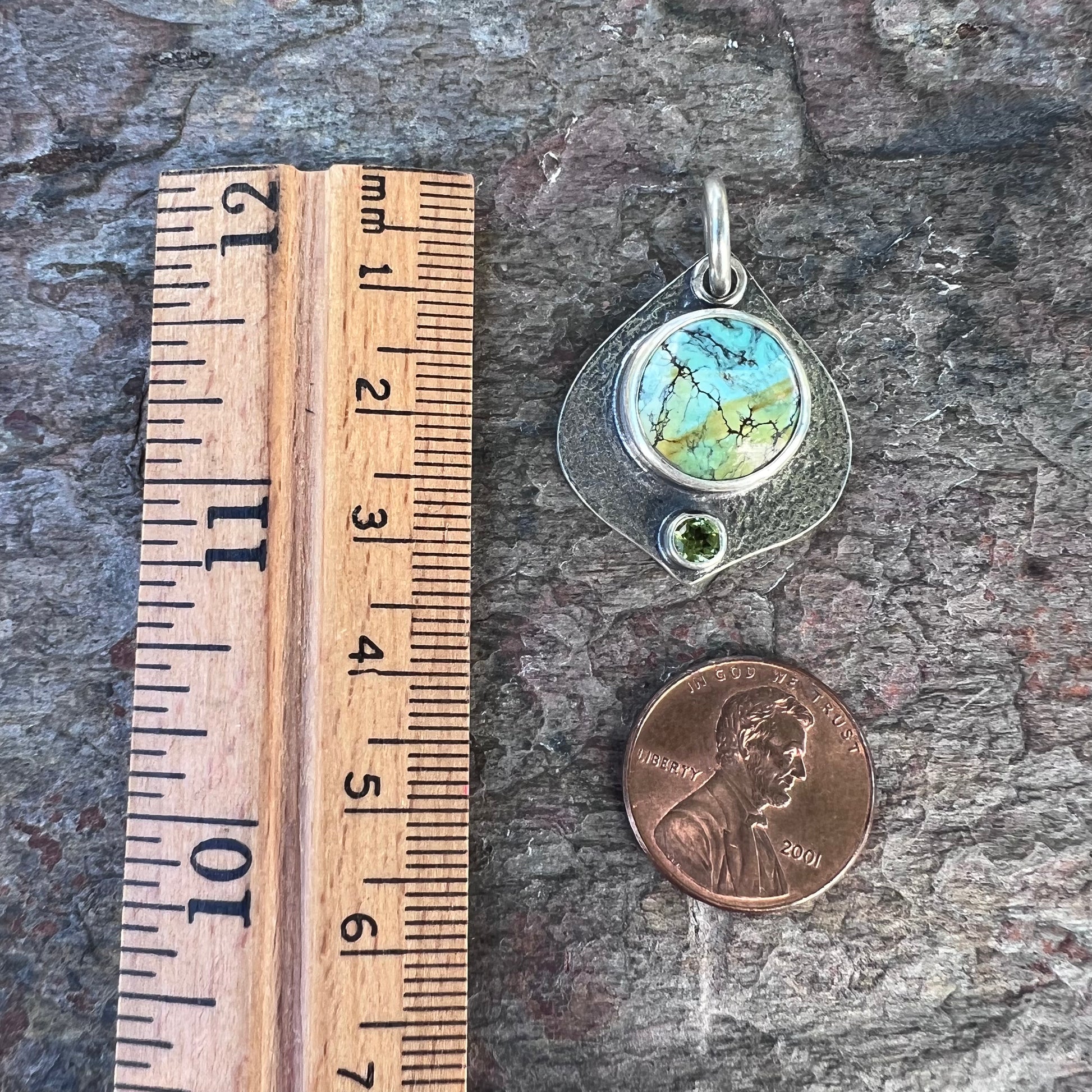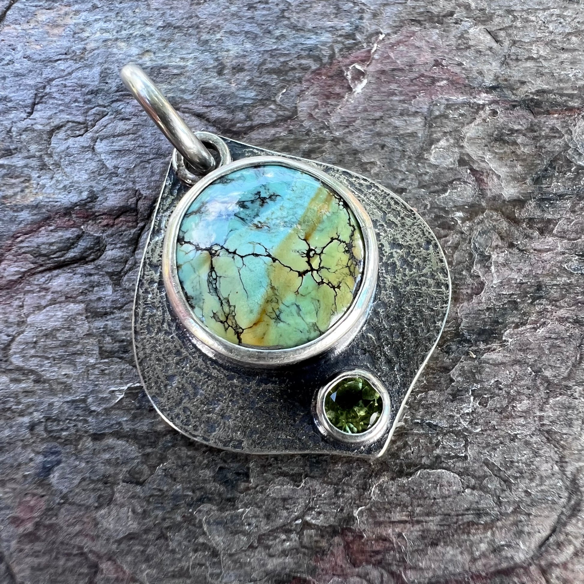 Turquoise and Peridot Sterling Silver Pendant - One-of-a-Kind Handmade Pendant
