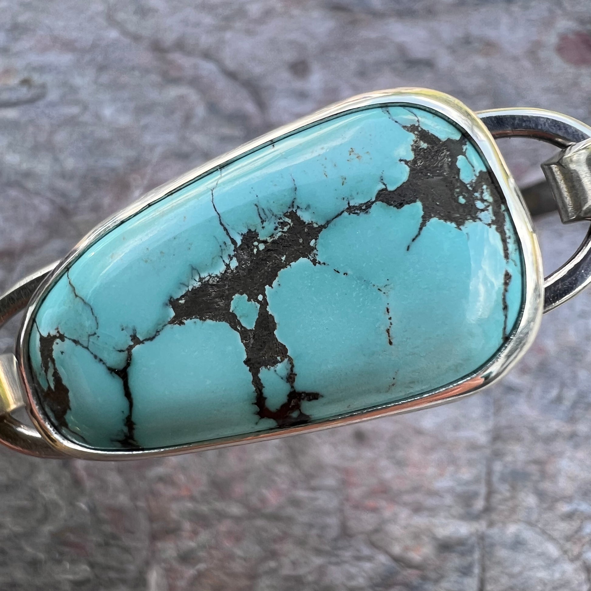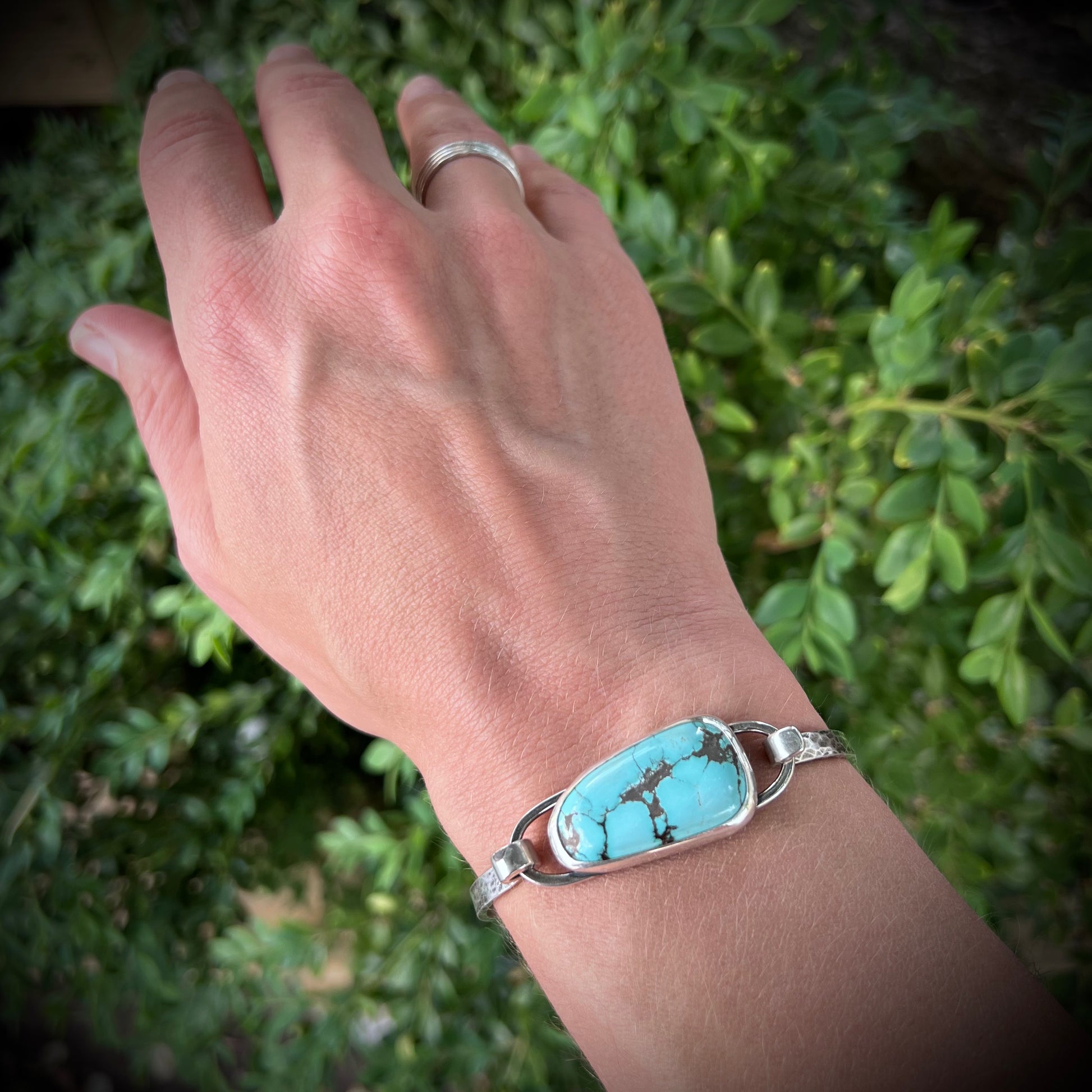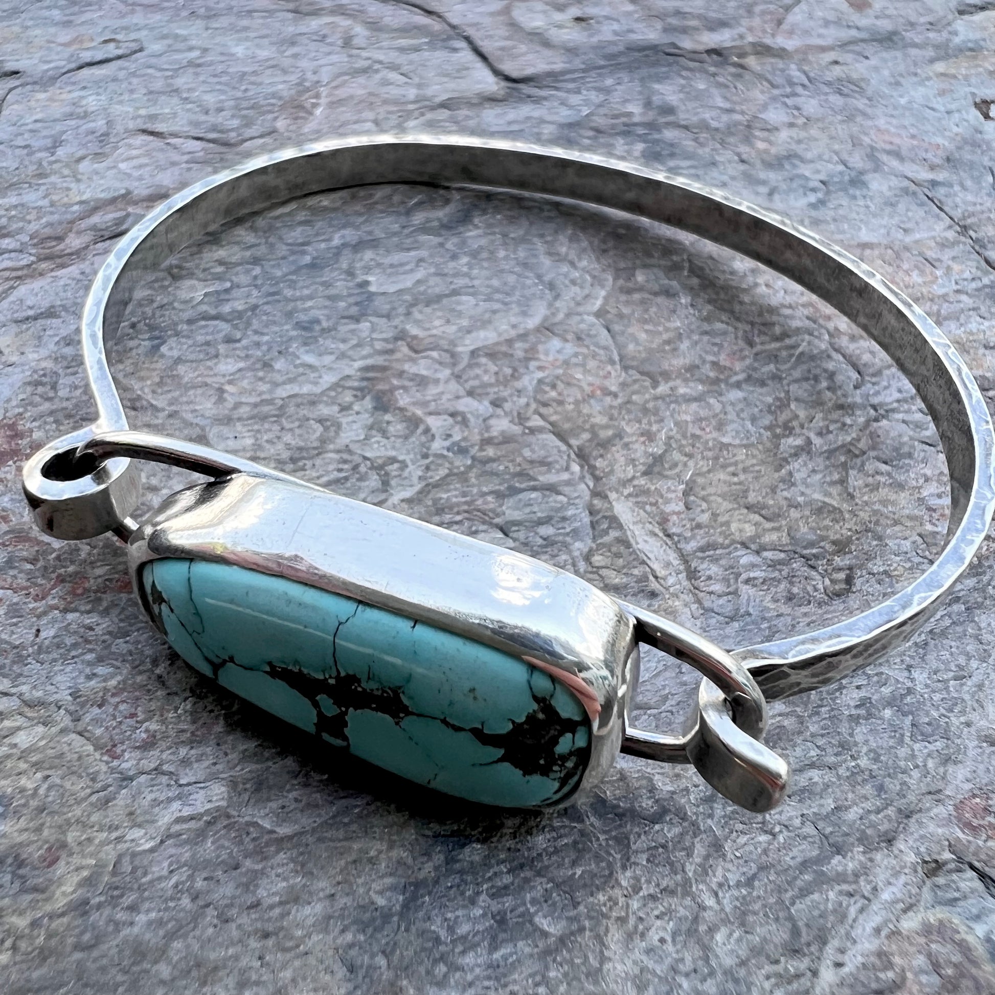 Turquoise Sterling Silver Bracelet - Handmade One-of-a-kind Tension Cuff Bracelet