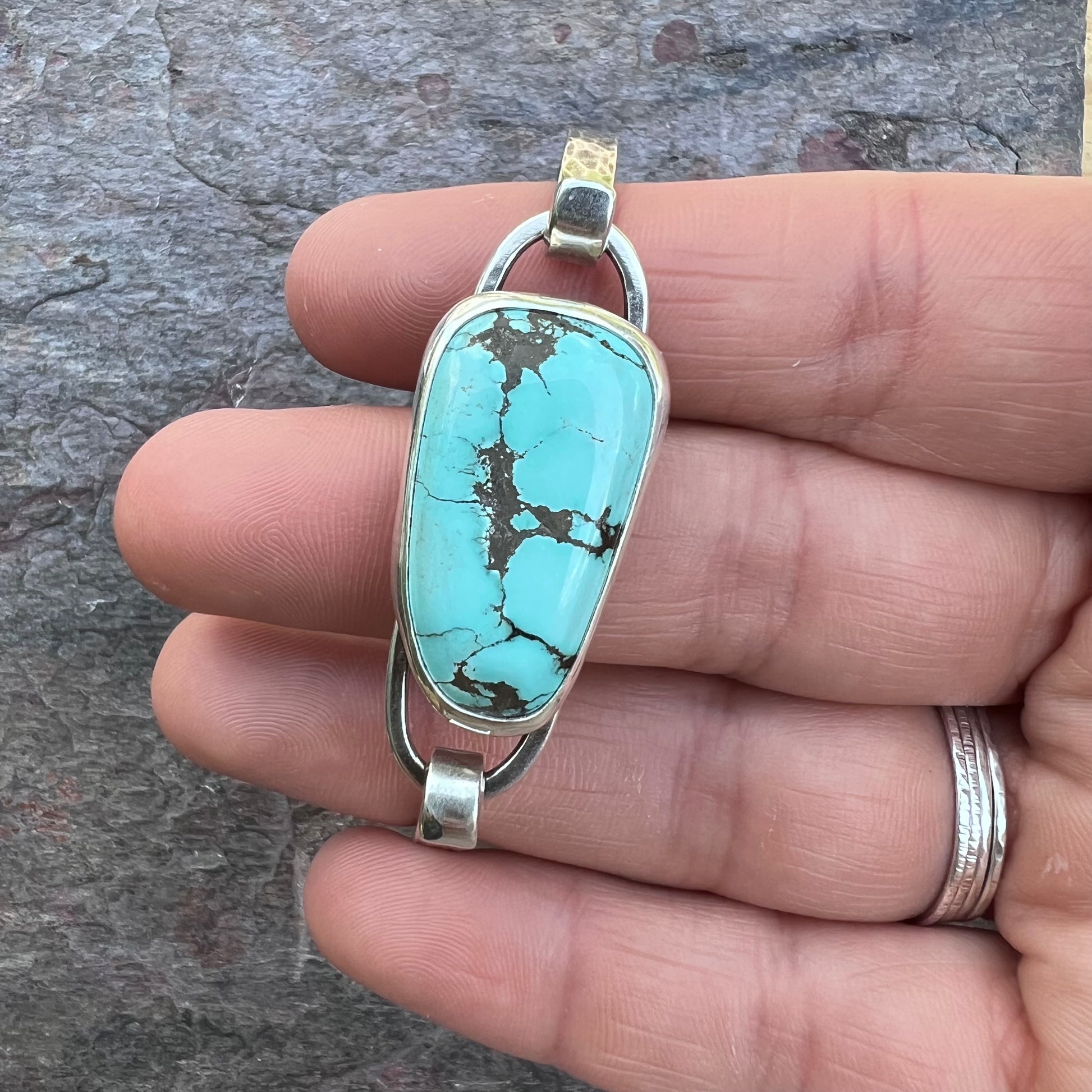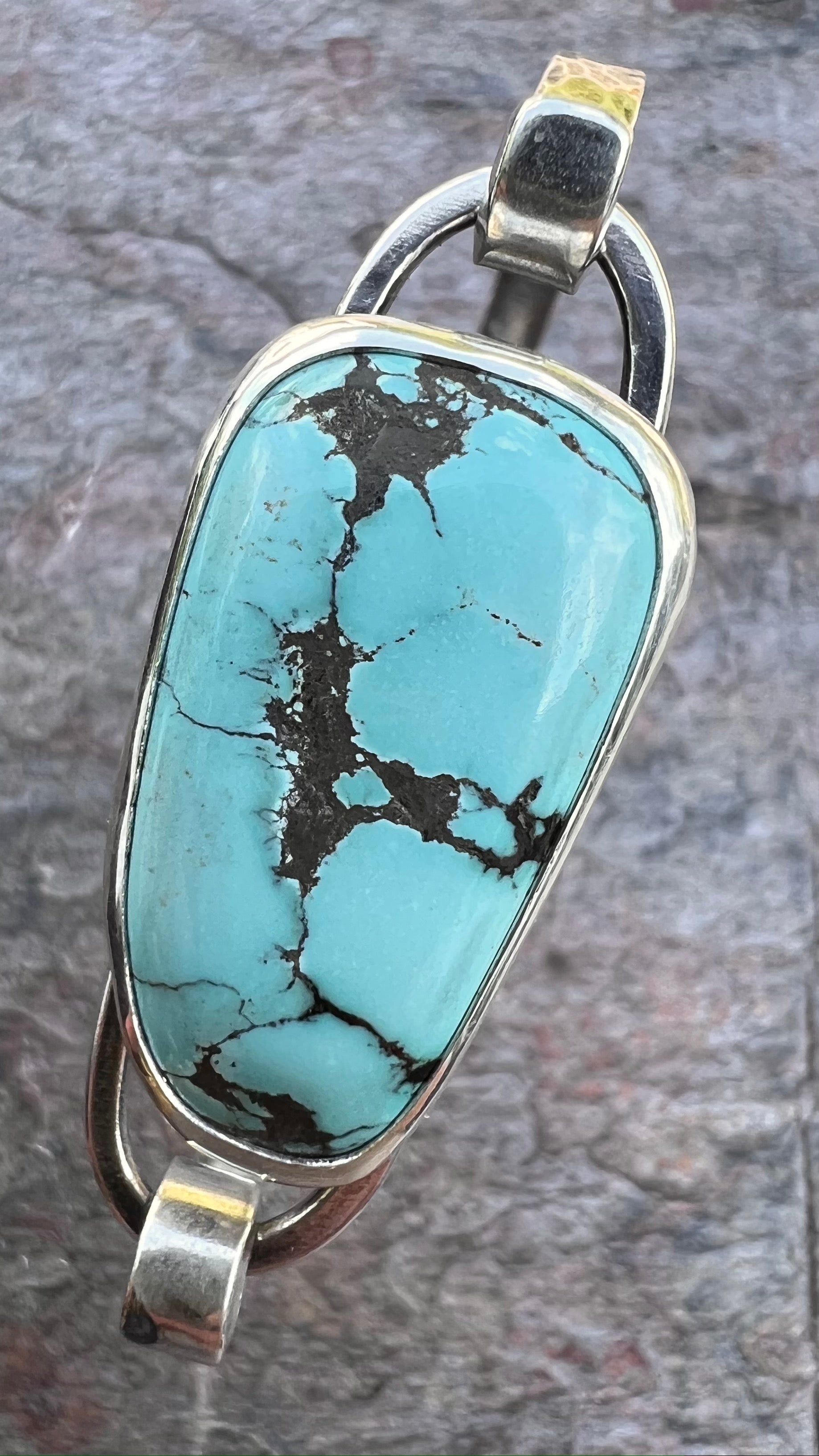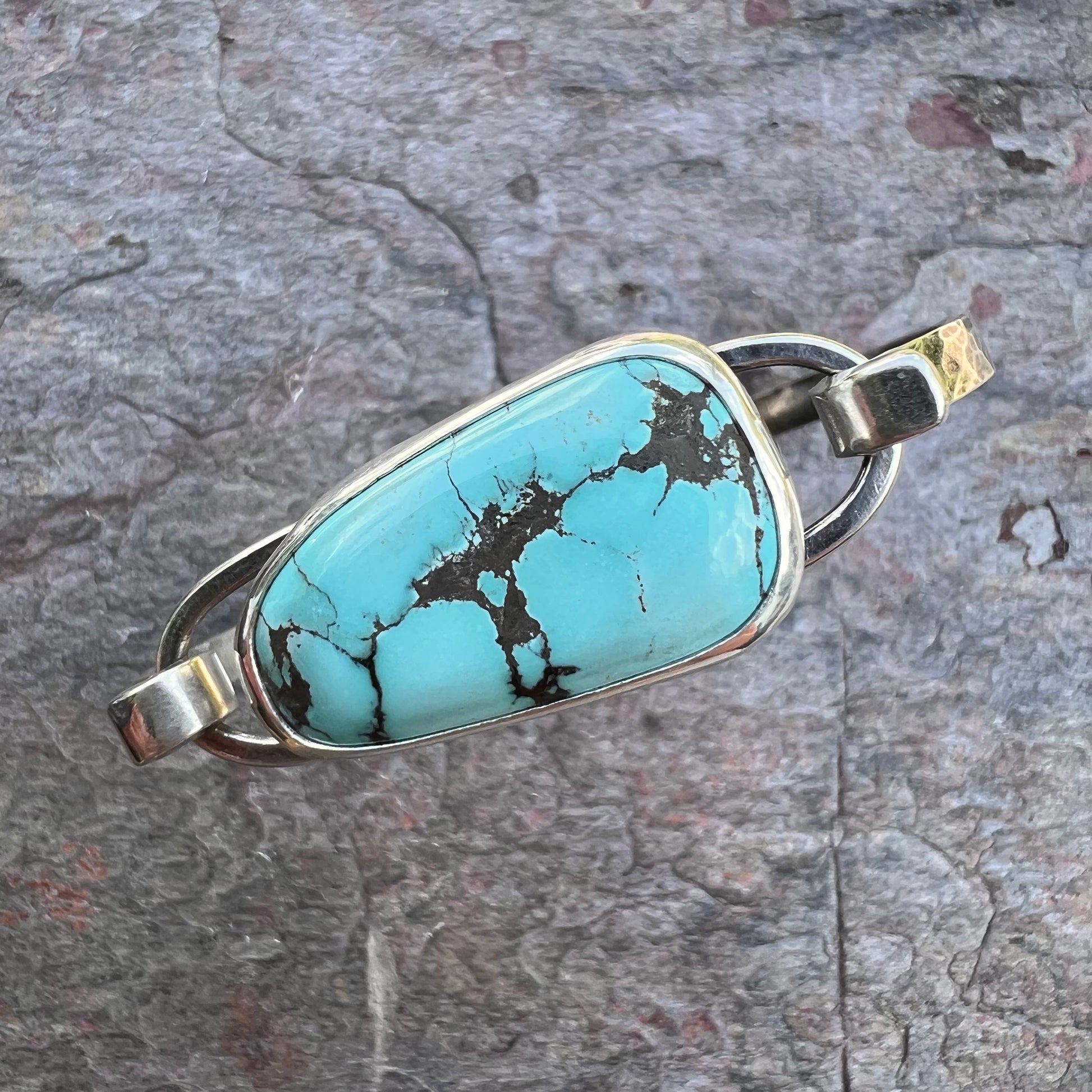 Turquoise Sterling Silver Bracelet - Handmade One-of-a-kind Tension Cuff Bracelet