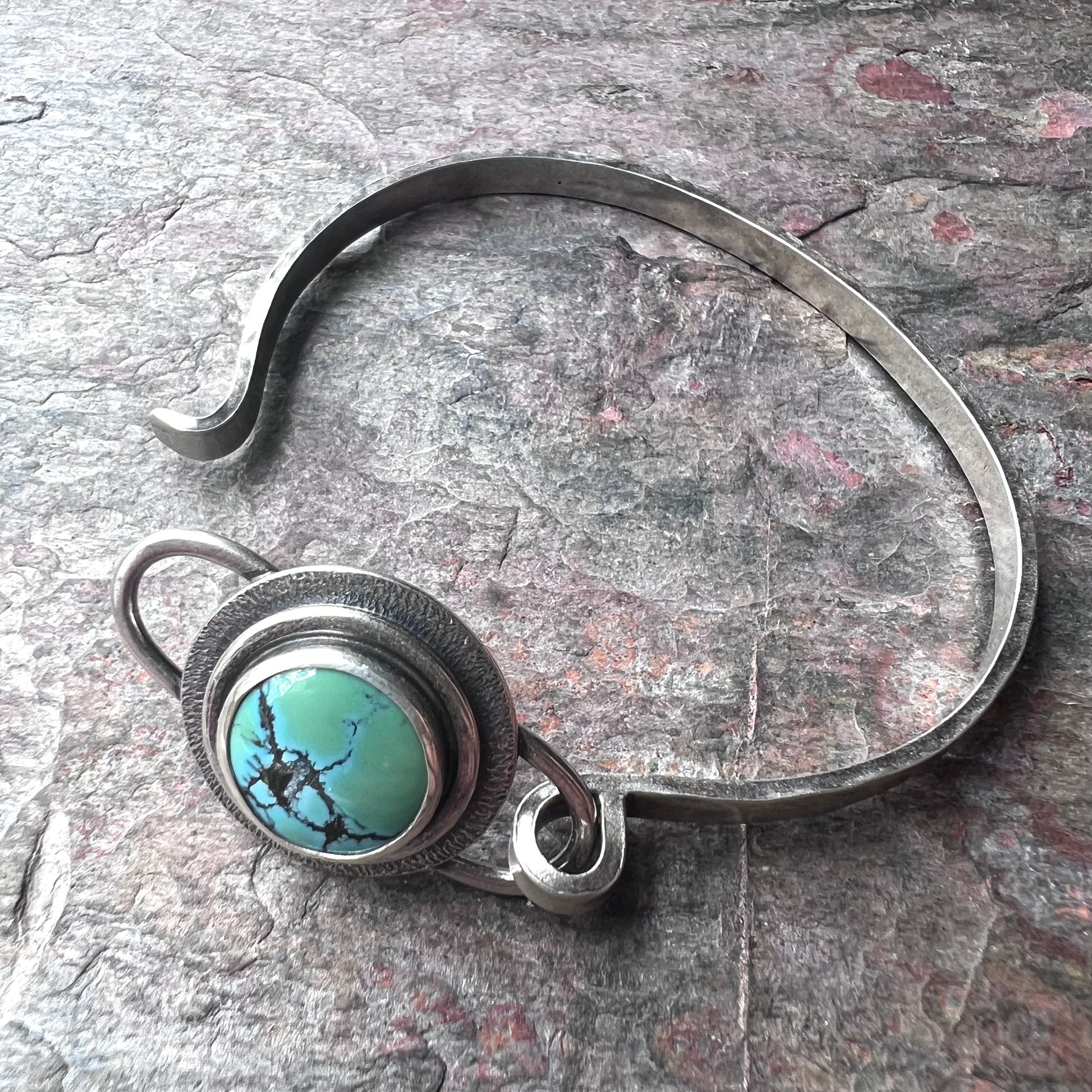 Turquoise Sterling Silver Bracelet - Handmade One-of-a-kind Tension Cuff Bracelet