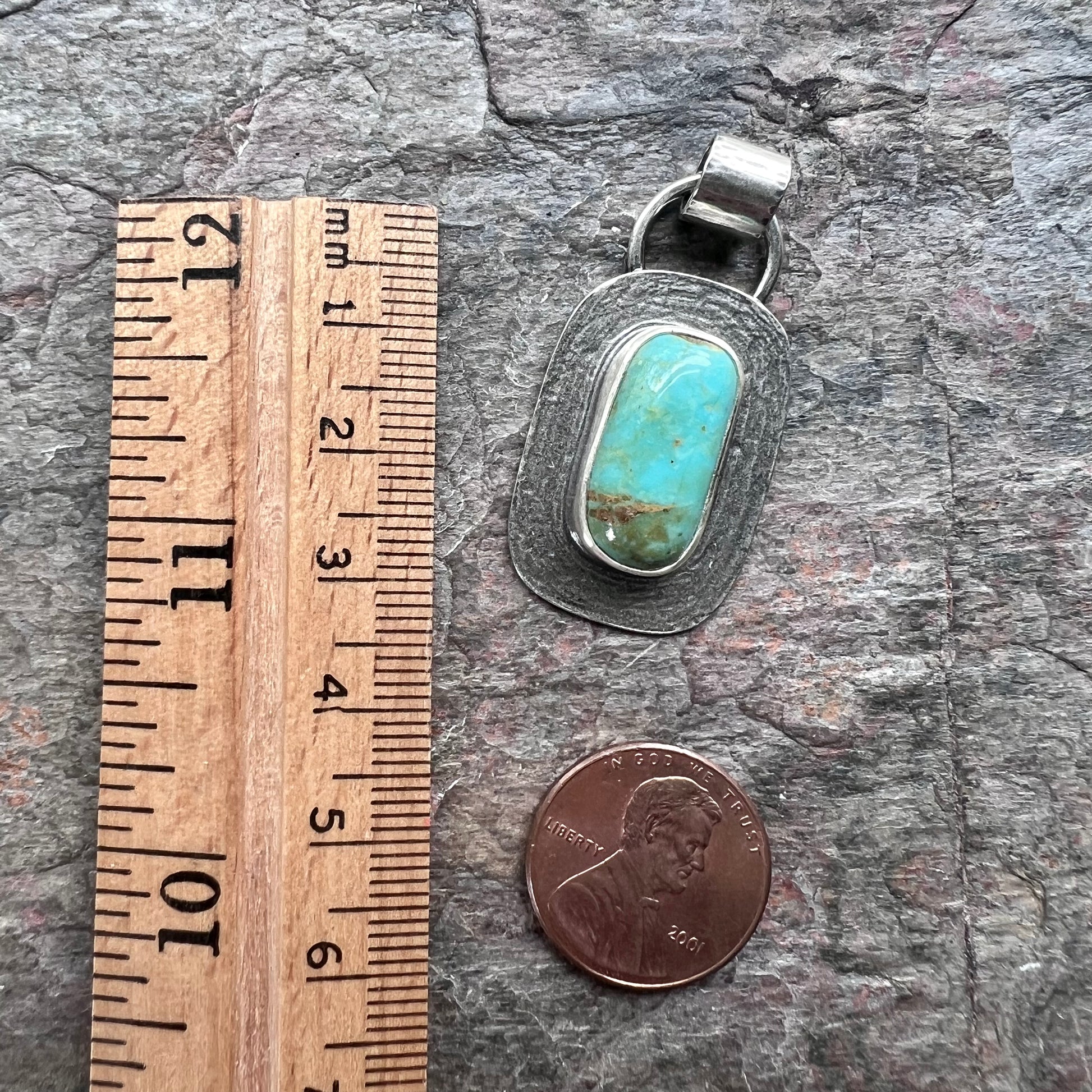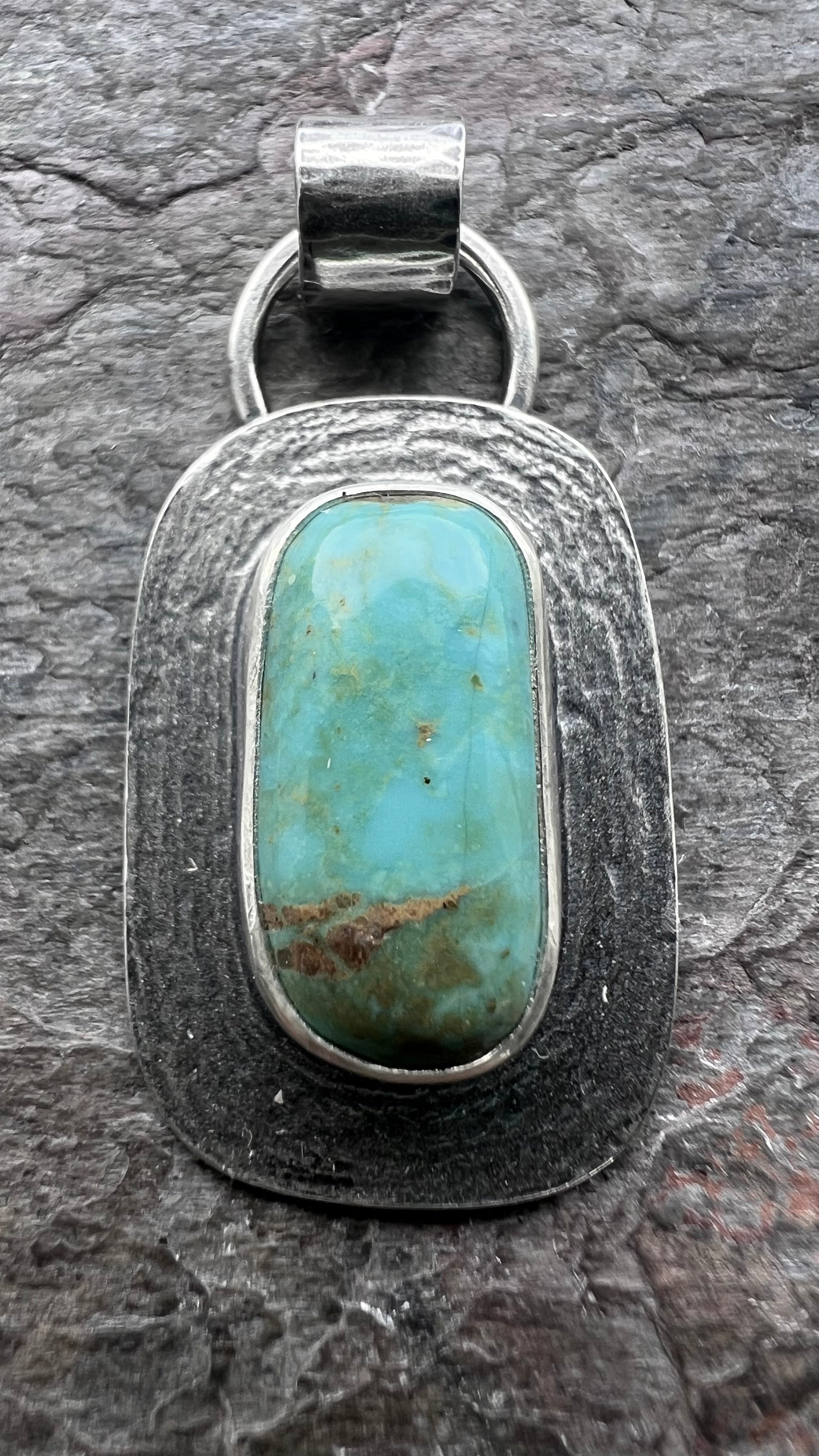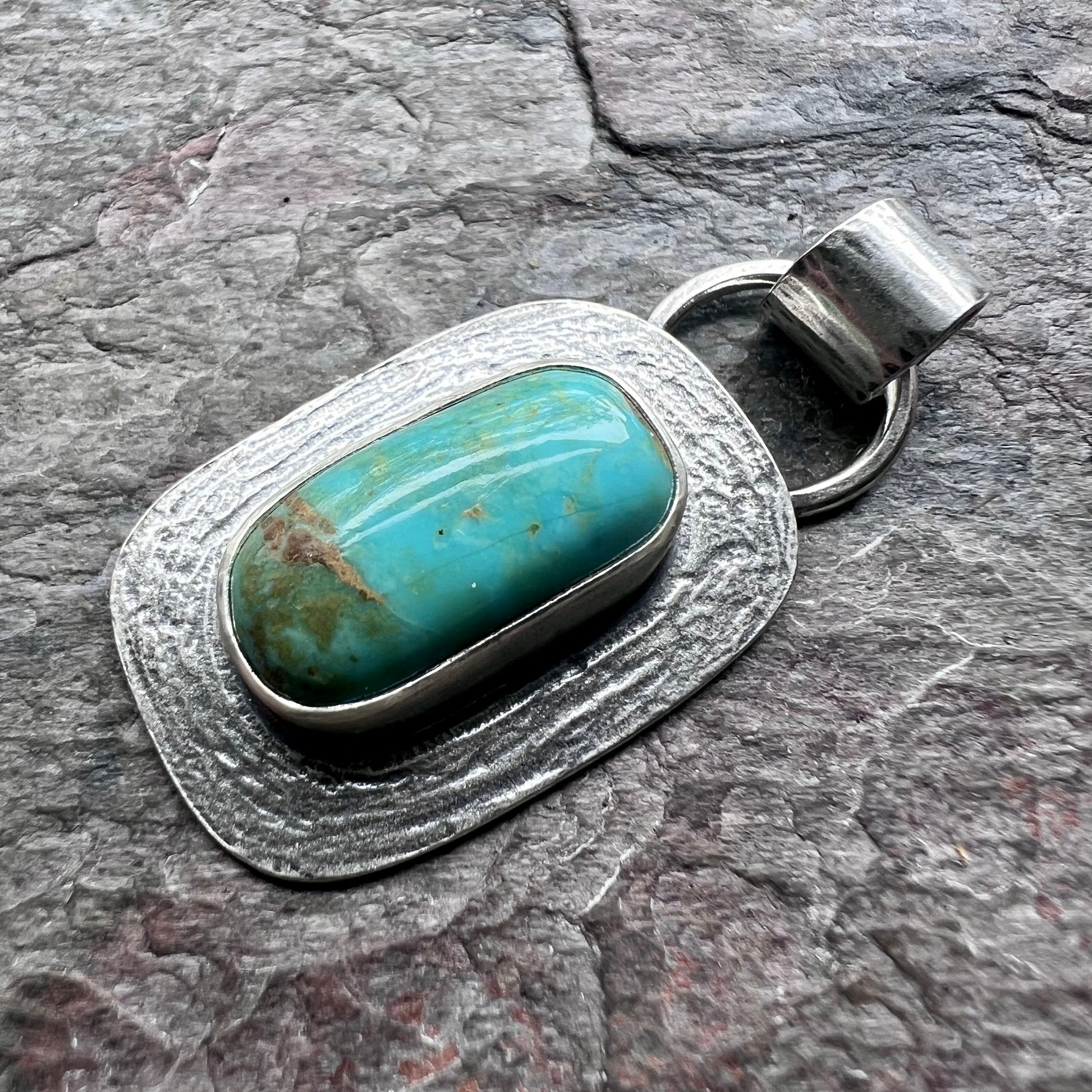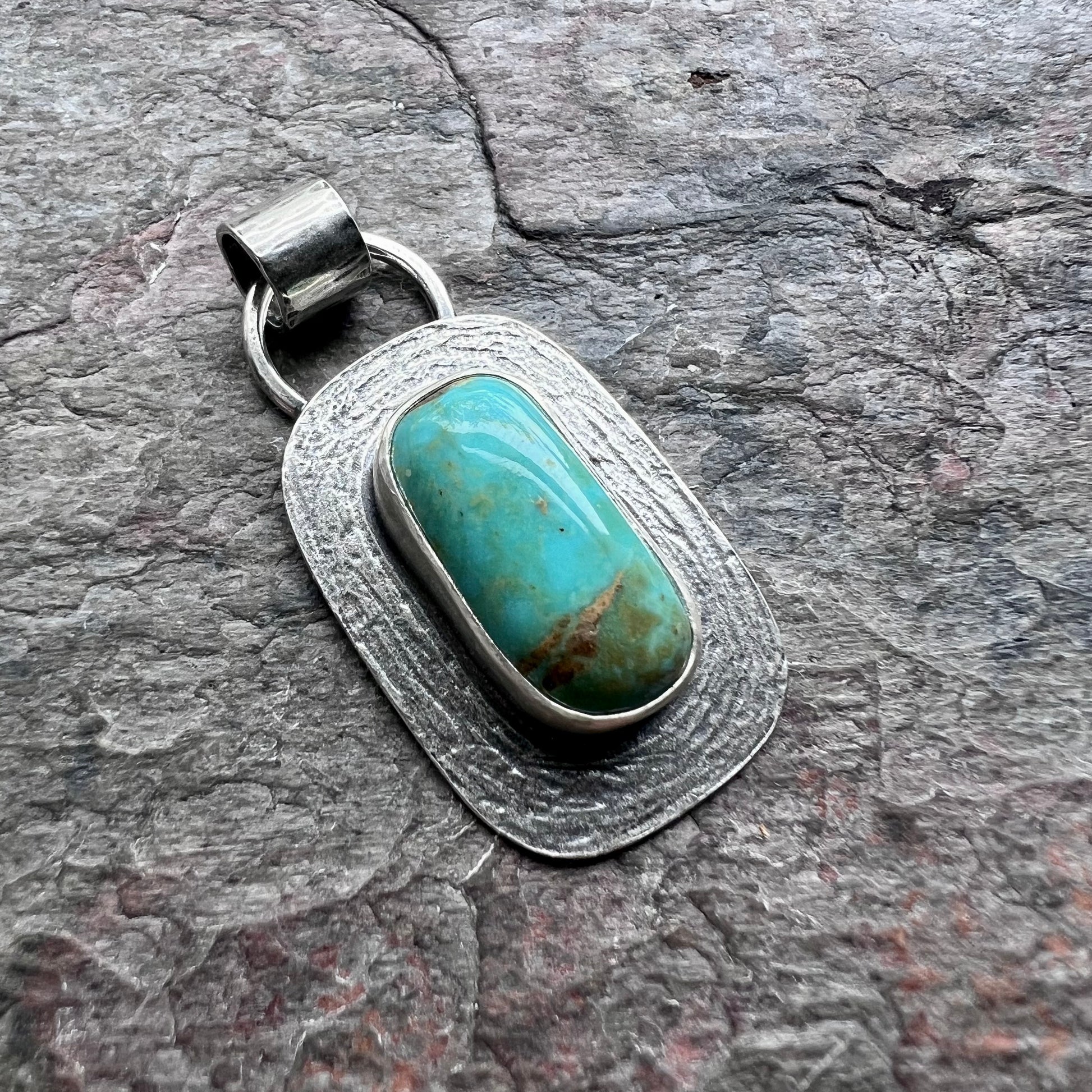 Turquoise Sterling Silver Rectangular Pendant - One-of-a-Kind Handmade Pendant