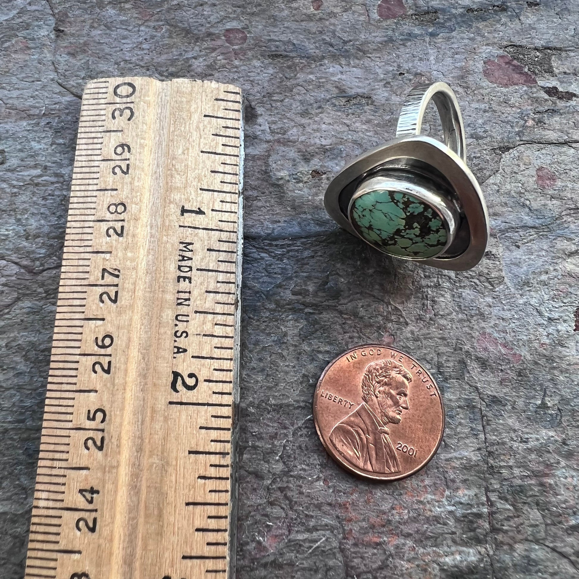 Turquoise Sterling Silver Ring - Genuine Turquoise Handmade One-of-a-kind Artisan Ring - Size 8.25