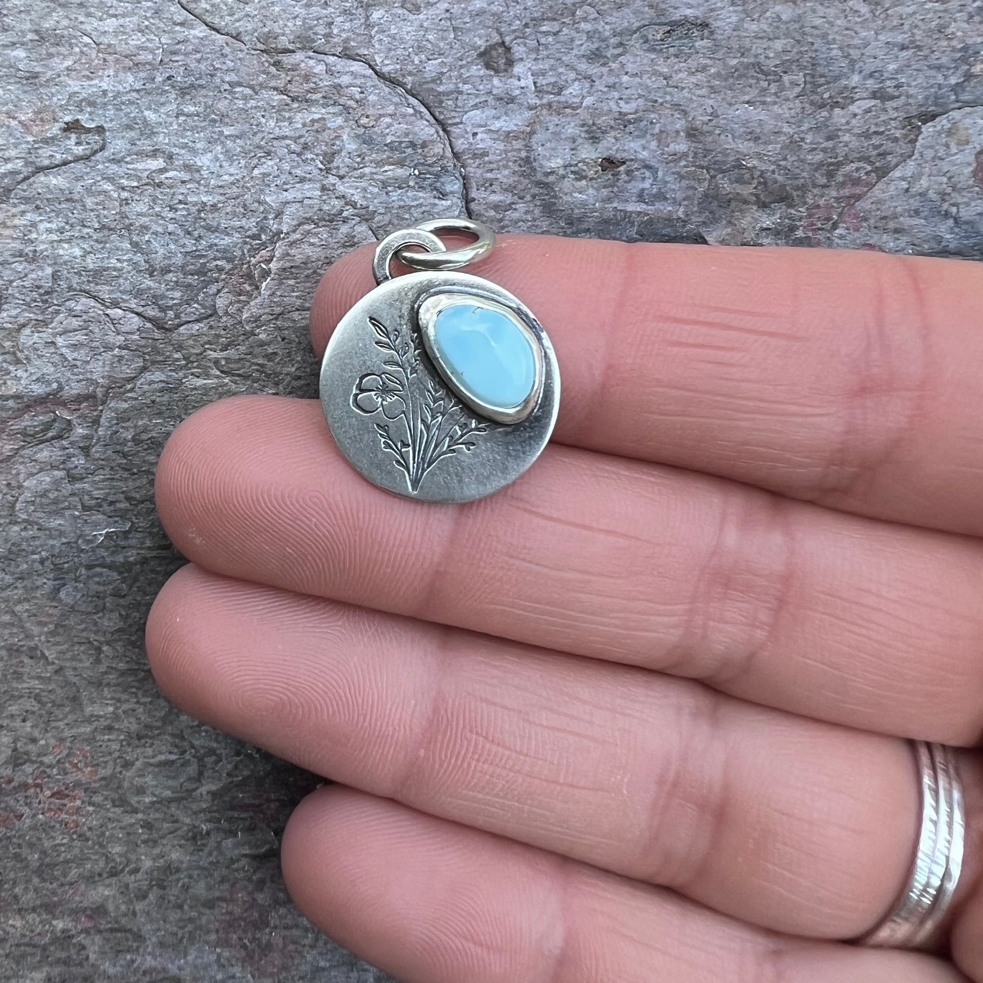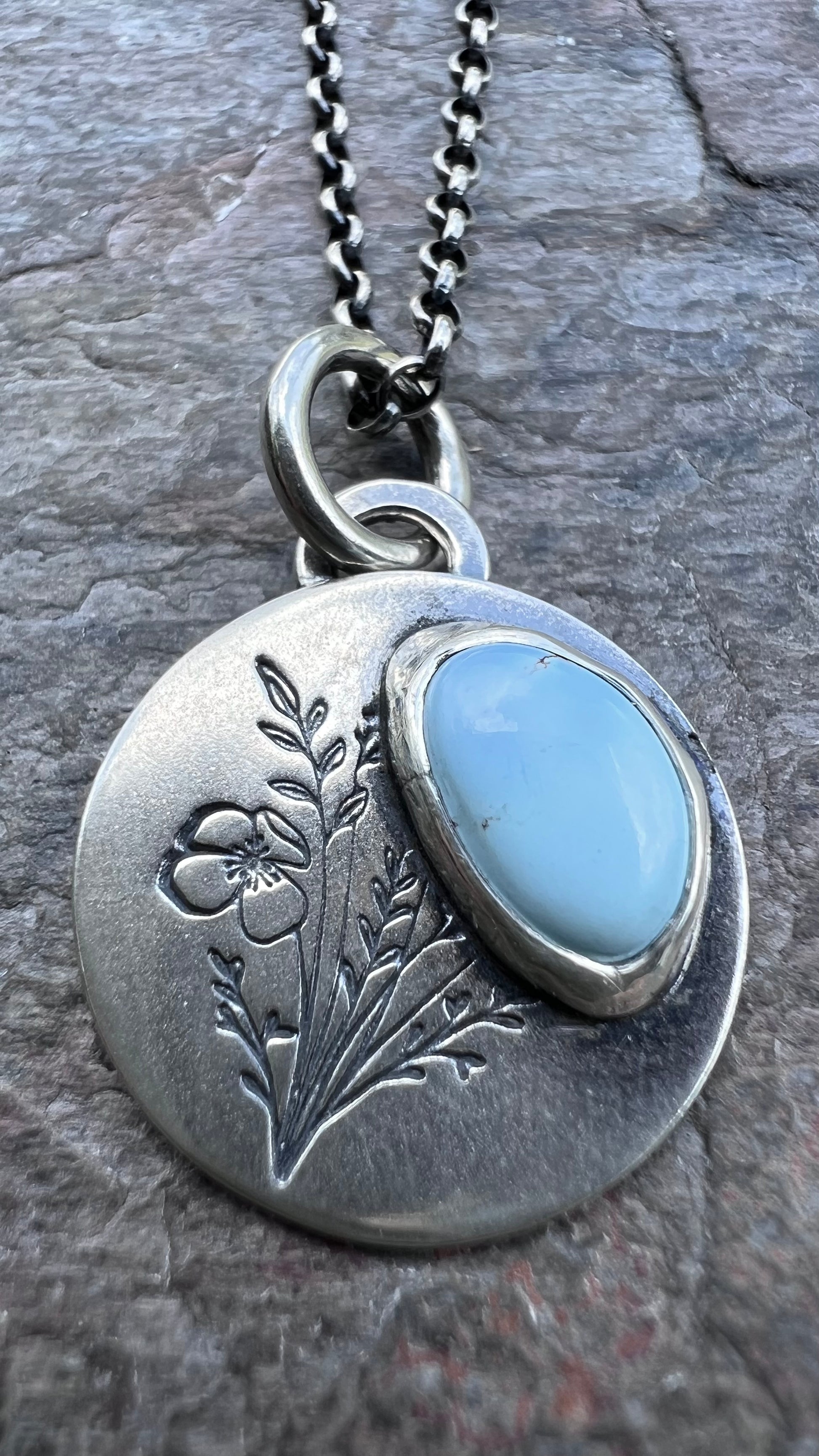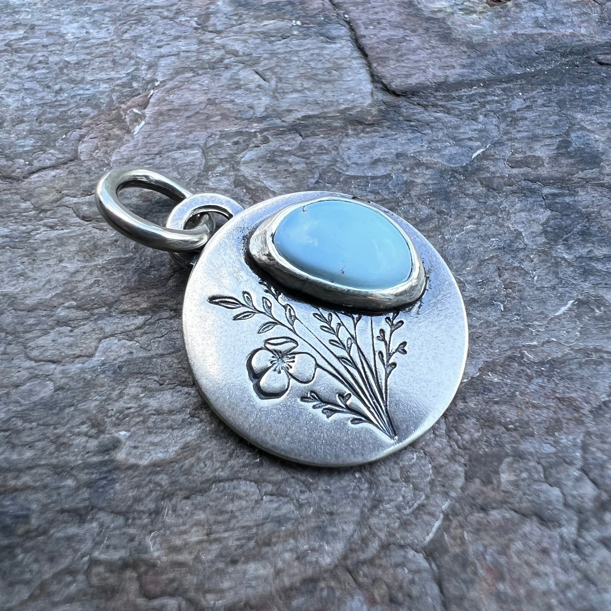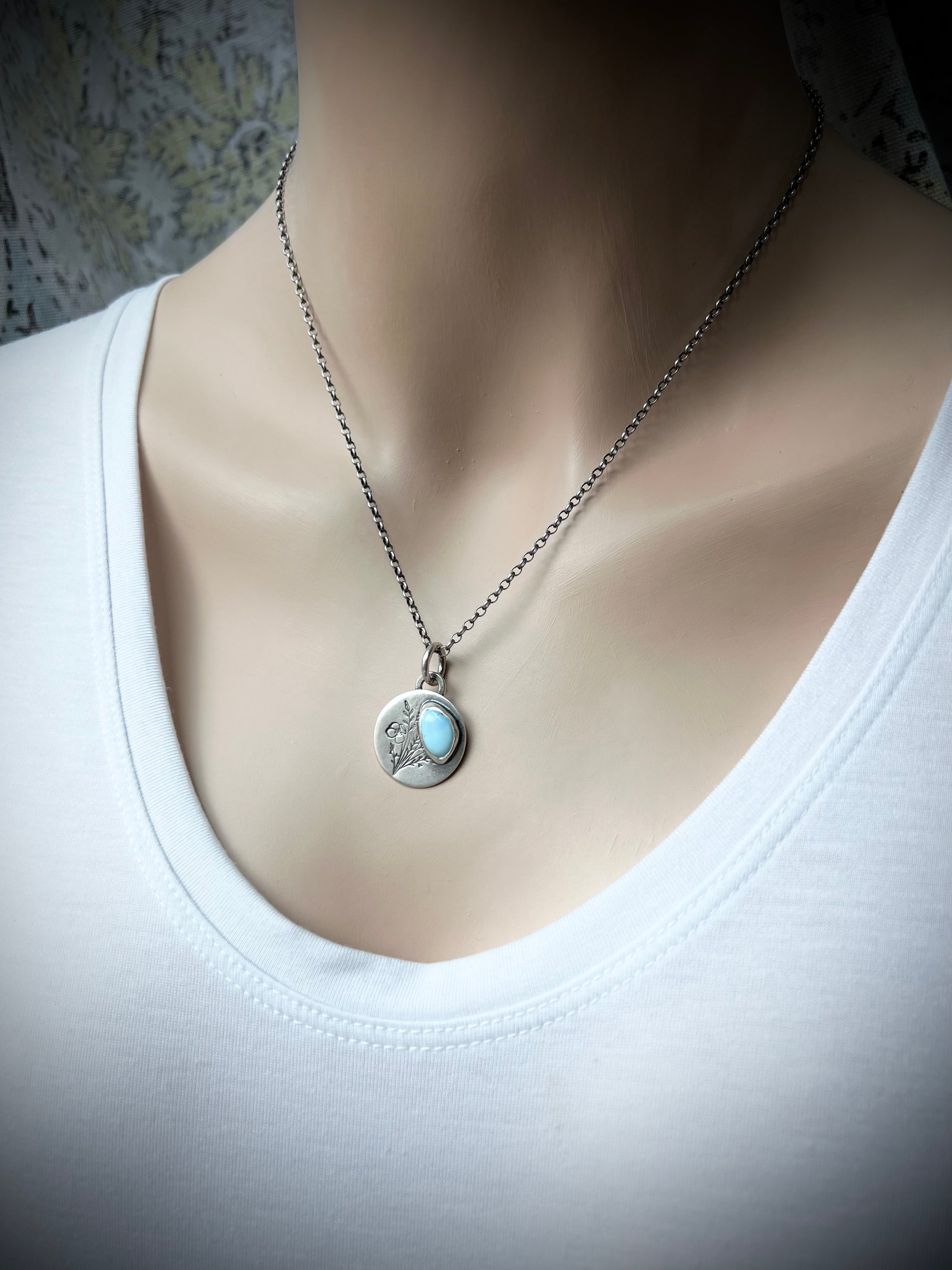 Turquoise Sterling Silver Wildflower Pendant - Handmade One-of-a-kind Pendant